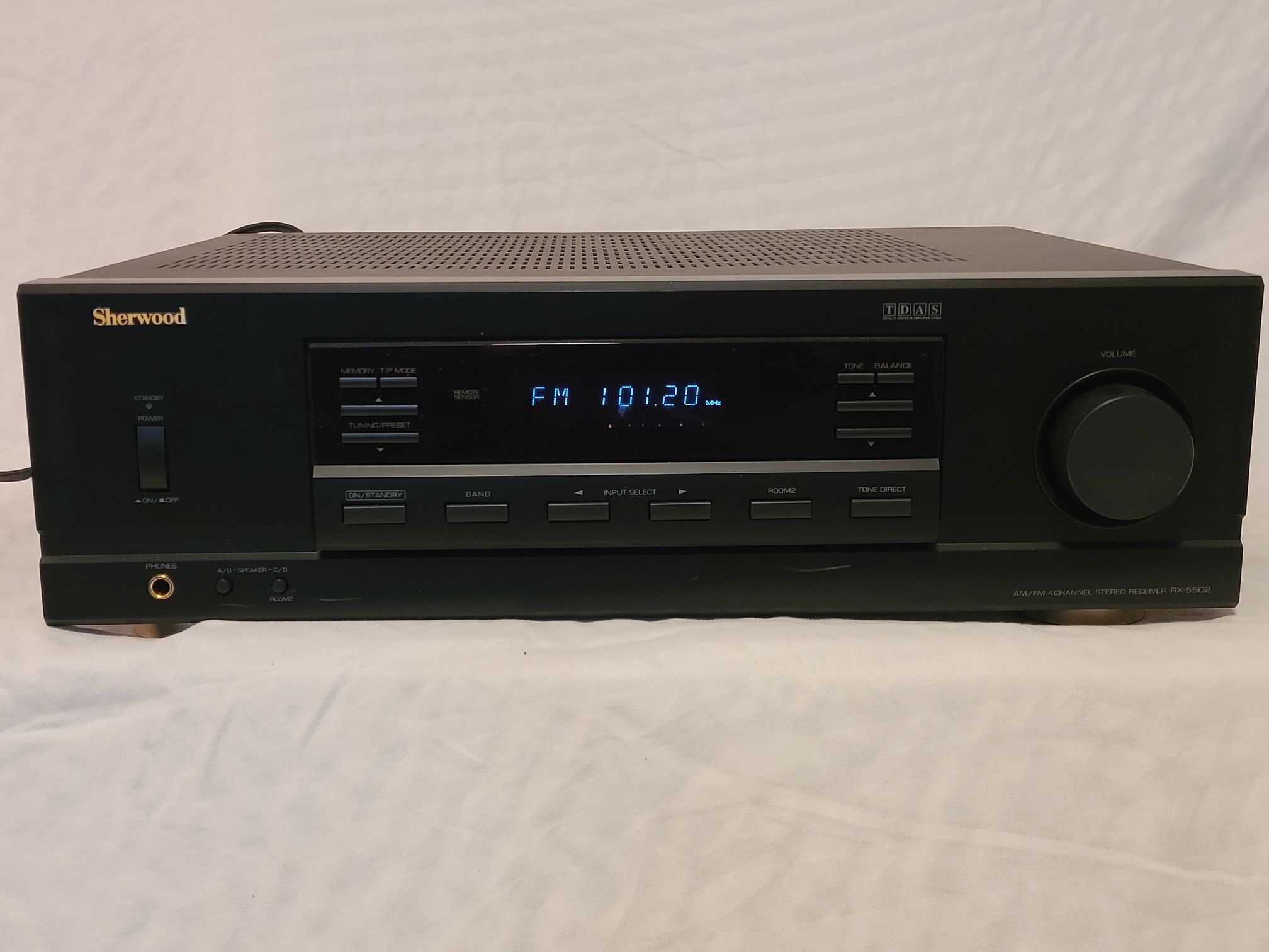 Sherwood RX-5502 Receiver (No remote control) $110 firm Rated at 100 Watts RMS x 2 with less than 0.20% from 20 Hz to 20 kHz into 8 ohms watts x 4 in Multi-room mode Switching for four pairs of loudspeakers from the front panel or via remote control 5 Audio Inputs including phono and Tuner Bass and Treble Tone Controls Totally Discrete Amplifier Stage (TDAS) Digital Encoder Volume Control System Illumination Sleep Timer Size: 17.38" x 5.56" x 14.5" No trades. No scams. Must pickup in Brentwood.