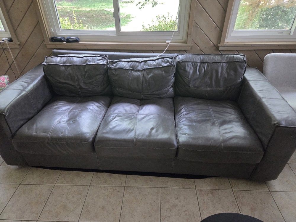 Comfy brown/Grey couch. Very comfortable. Recently deep cleaned. Size L x W x H 7'9.5" x 3'4" x 2'7.5" Best to bring trailer or truck/van for easier loading