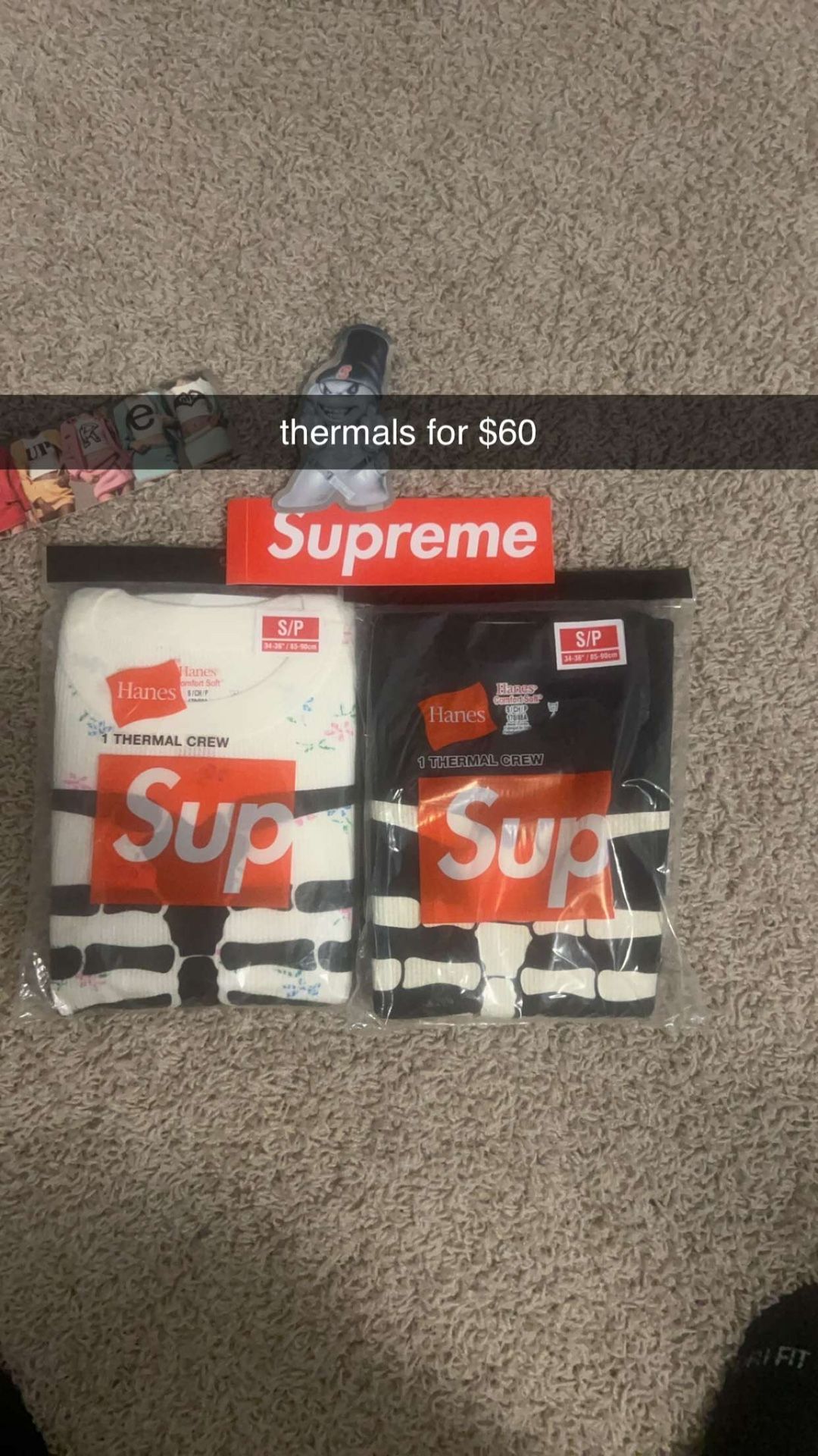 Brand new thermals from the week 9 drop both are size small and run big