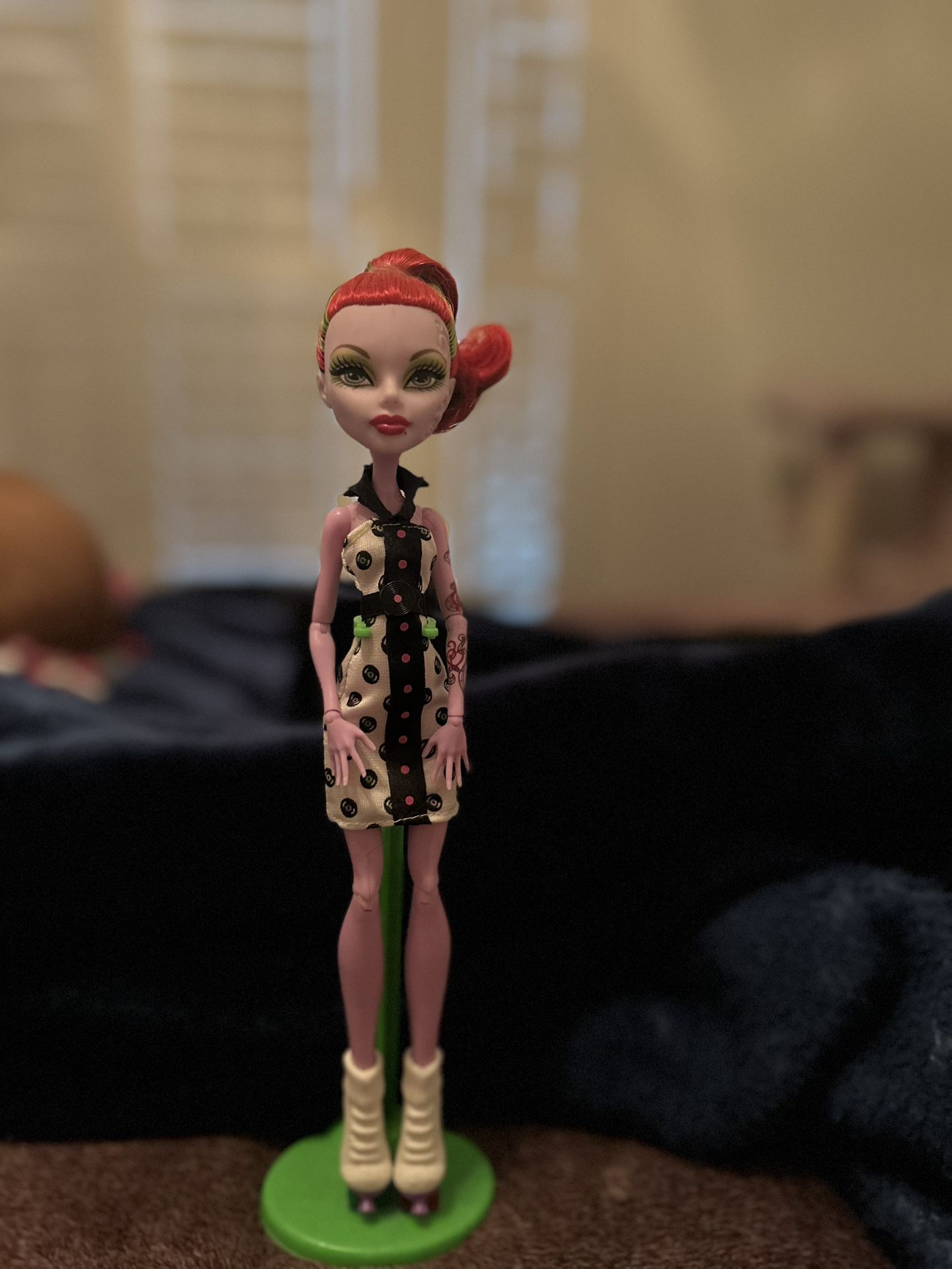 A little worn down but out of love from when I was a kid. Only thing about Clawdeen Doll, feet are slightly chewed, and hair is cut/straightened; otherwise she is perfect and has lots of care n love to give! The other doll just does not have protective gear for her roller skating. No boxes. If you only want one or 2 people want one, I can remake a post for each on seperate pricing, just dm!