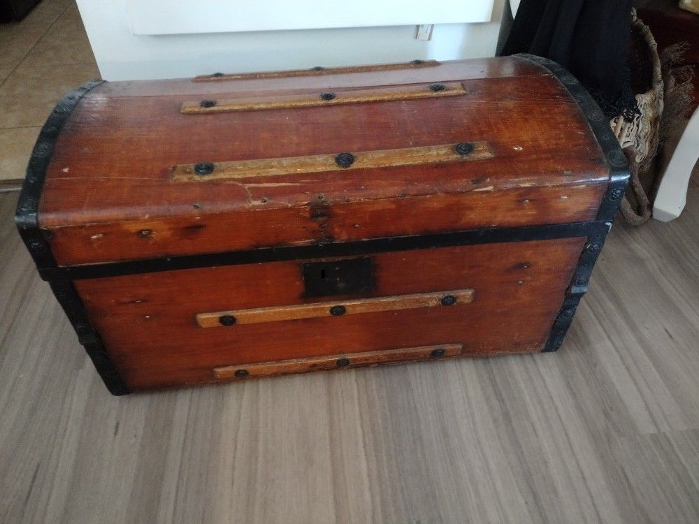 New Price. 30"' wide Curved top Nice antique wood trunk