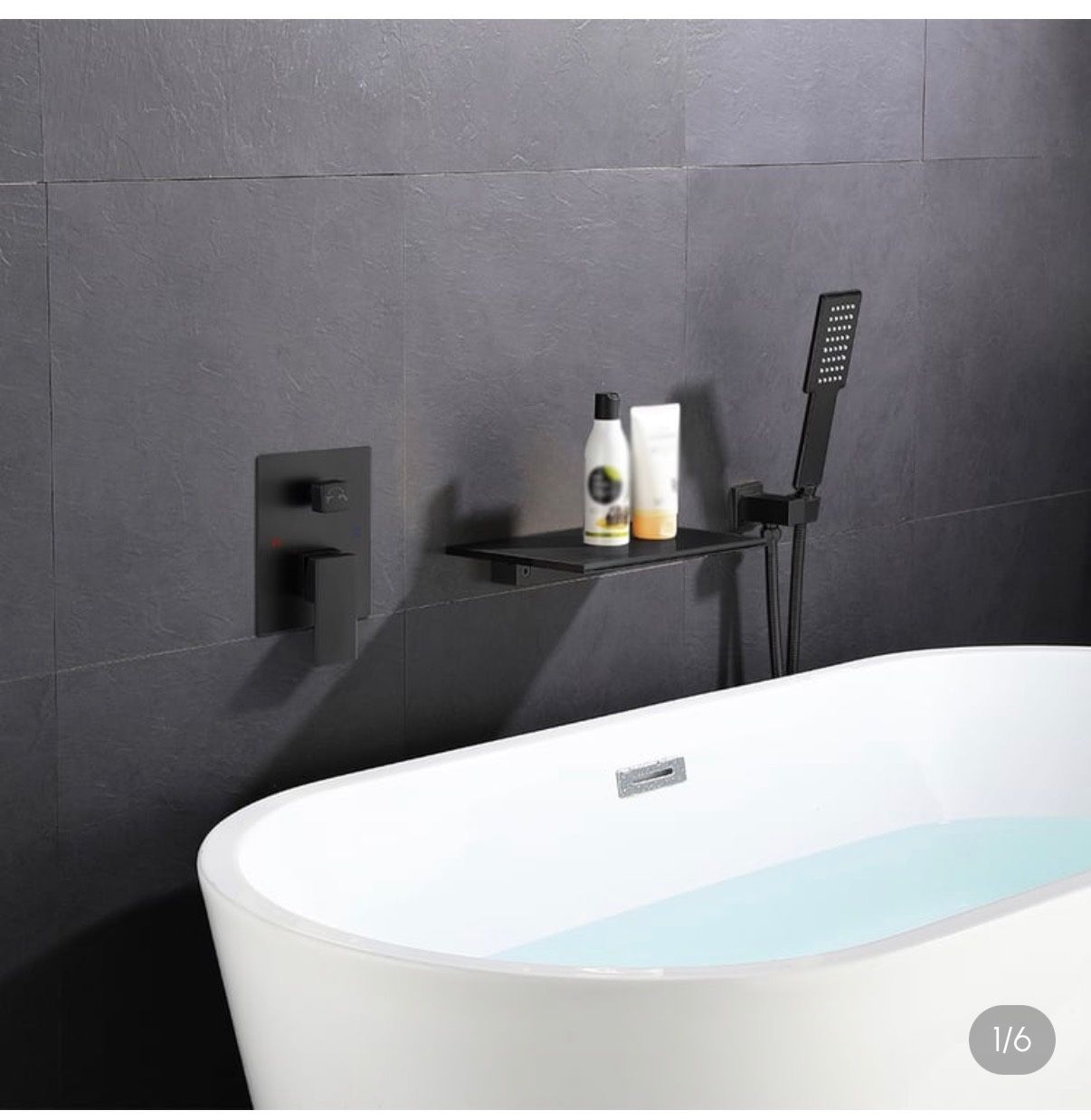 Solid Brass Waterfall Single Handle Wall-Mounted Bathtub Faucet Tub Filler In Black $60