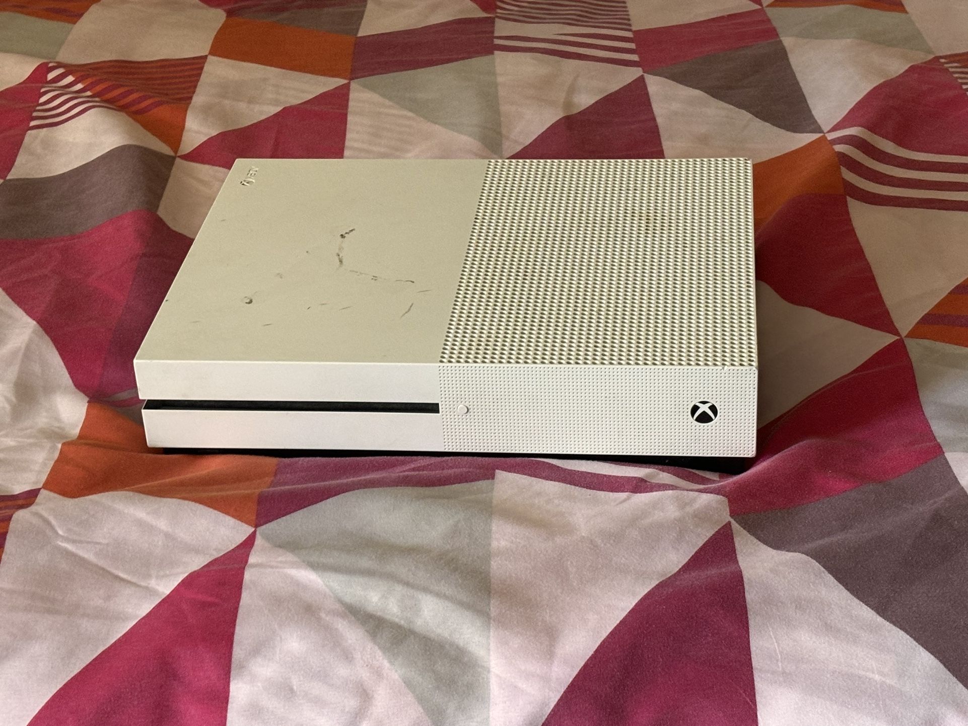 “Xbox One S (GC): Sleek, powerful, and in excellent condition, this console comes with all original cables for a seamless setup. Controller not included, but it’s ready to deliver top-tier gaming and entertainment!”
