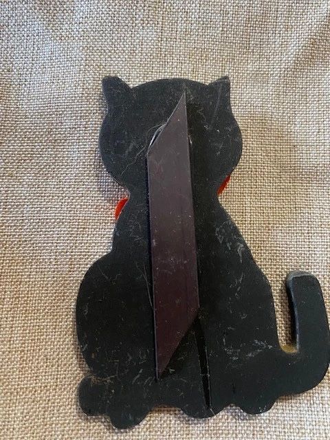 Handmade Vintage Wooden Carved Black Cat Magnet