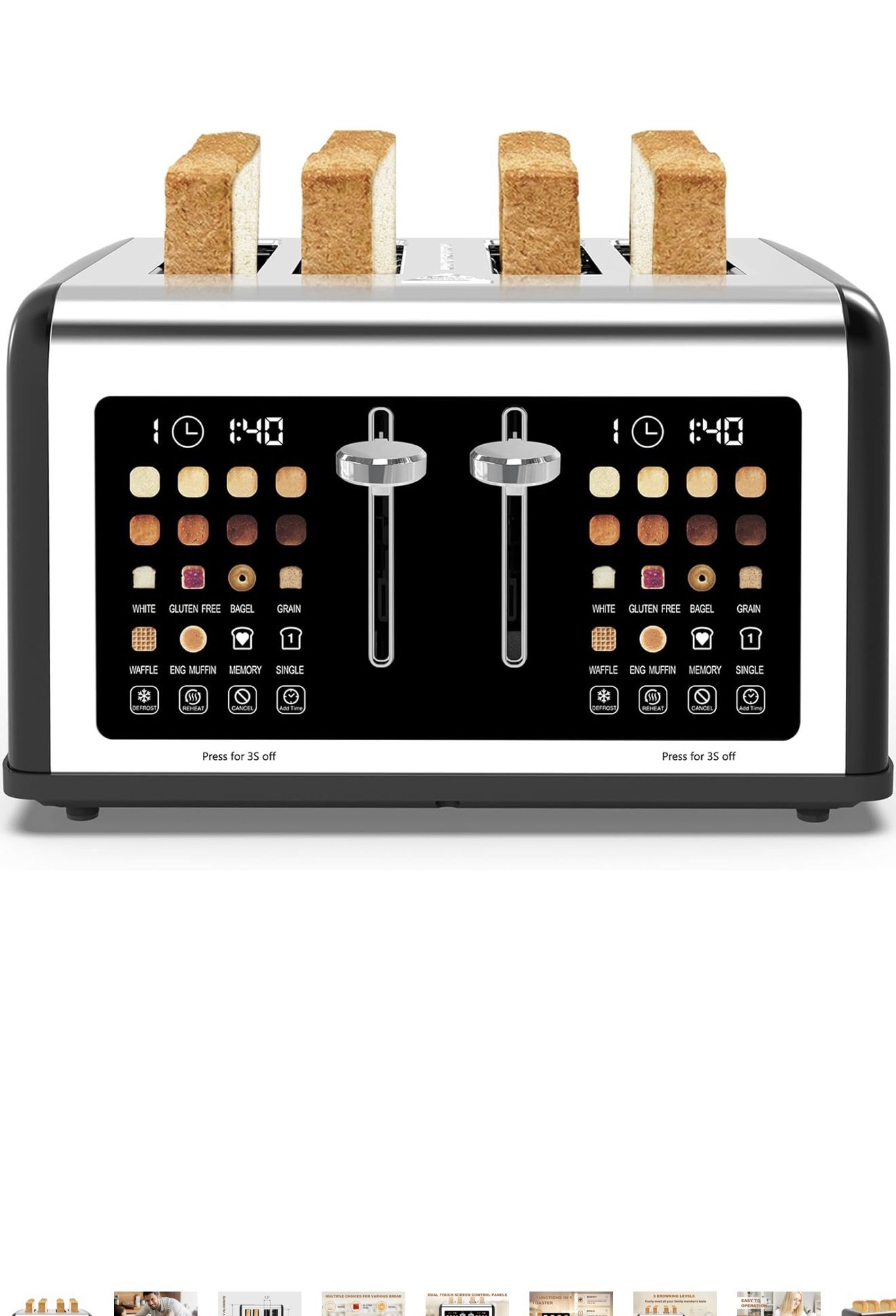 Tostadora con pantalla táctil de 4 rebanadas, temporizador digital de acero inoxidable, tostadoras de panel de control doble, 8 ajustes de sombra, 6 t