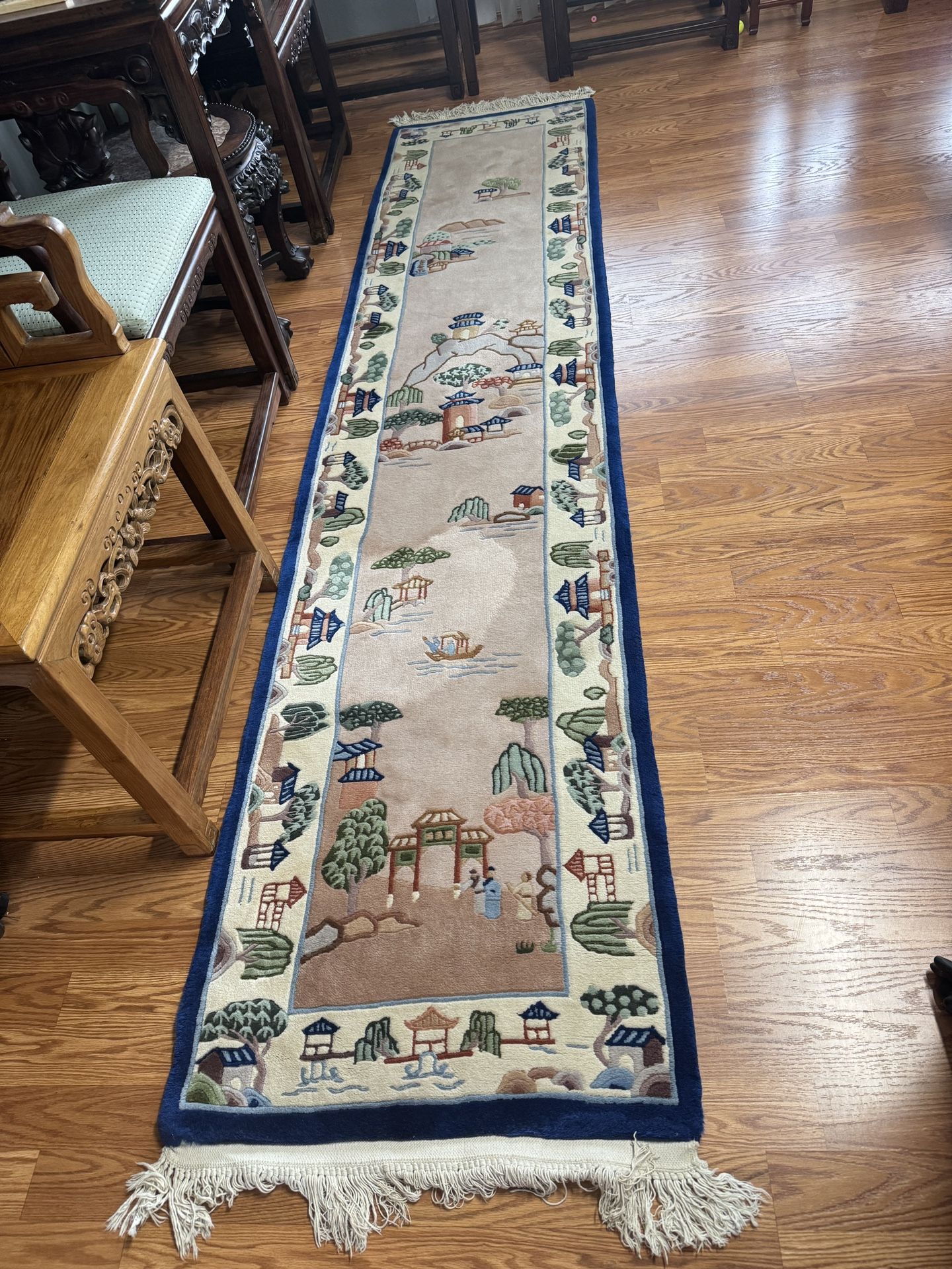 Antique Chinese pure wool landscape painting carpet Very well preserved, almost new, never used 10ft 6” * 2ft 4”