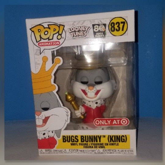 Funko Pop King Bugs Bunny Target Exclusive New! Never Opened! Will be packaged with great care to avoid any damage during transit. Please Feel free to check out my other listings! and/or share :-) I also do custom funko pops/requests. I am always willing to bundle listings just message me if interested. Note: Listed at minimum amount at just enough to get my money back so listing amount is firm. I'm just trying to thin out my collection.