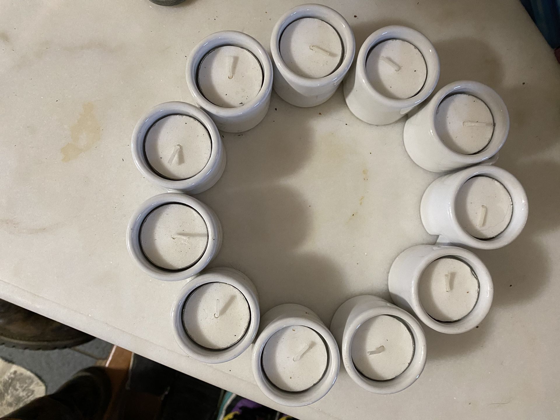 11 tea light holders all interlocking. 1 broke so 11 remain in nice condition
