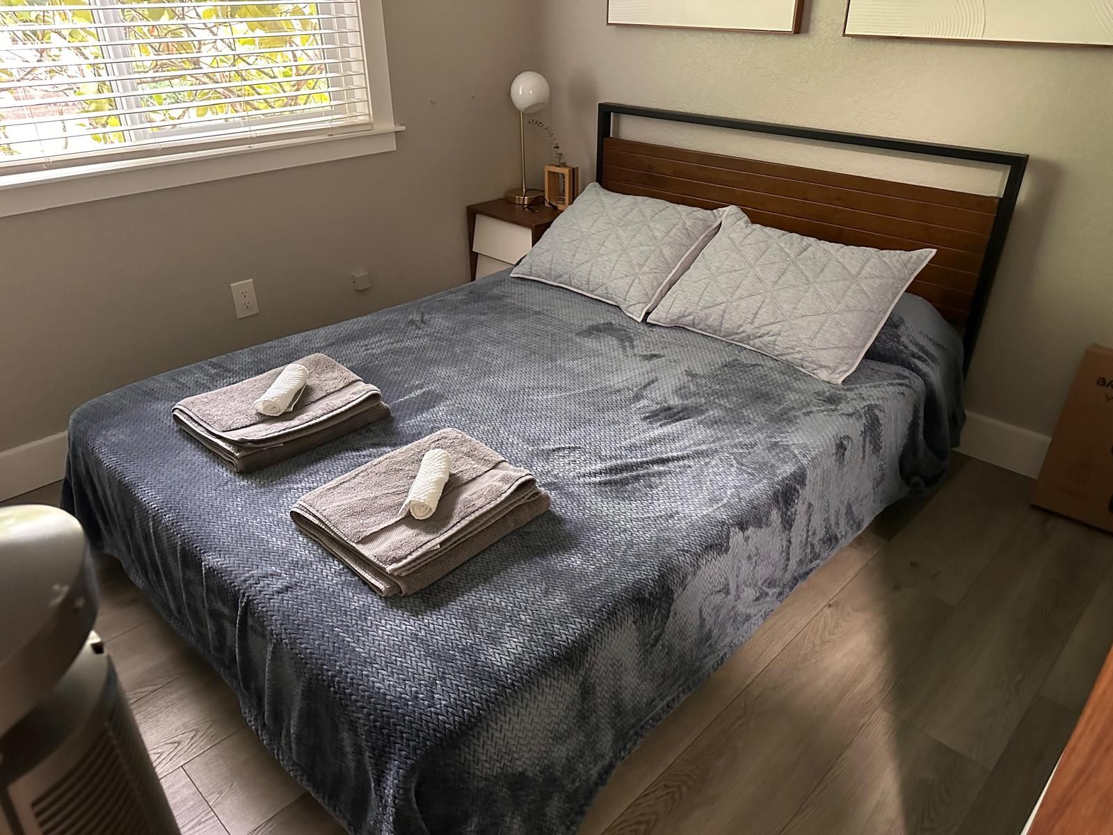 Price for entire set: $300 ($550 new) Individual price shown below. Mattress: Lucid 10 Inch Memory Foam Mattress - Firm Feel - Infused with Refreshing Bamboo Charcoal and Cooling Gel - Bed in a Box - Temperature Regulating - Pressure Relief - Breathable - Queen Size New price: $350 Used price: $200 Frame: ZINUS Suzanne 37 Inch Metal and Wood Platform Bed Frame / Solid Wood & Steel Construction / No Box Spring Needed / Wood Slat Support / Easy Assembly, Chestnut Brown, Queen New price: $210 Used price: $100