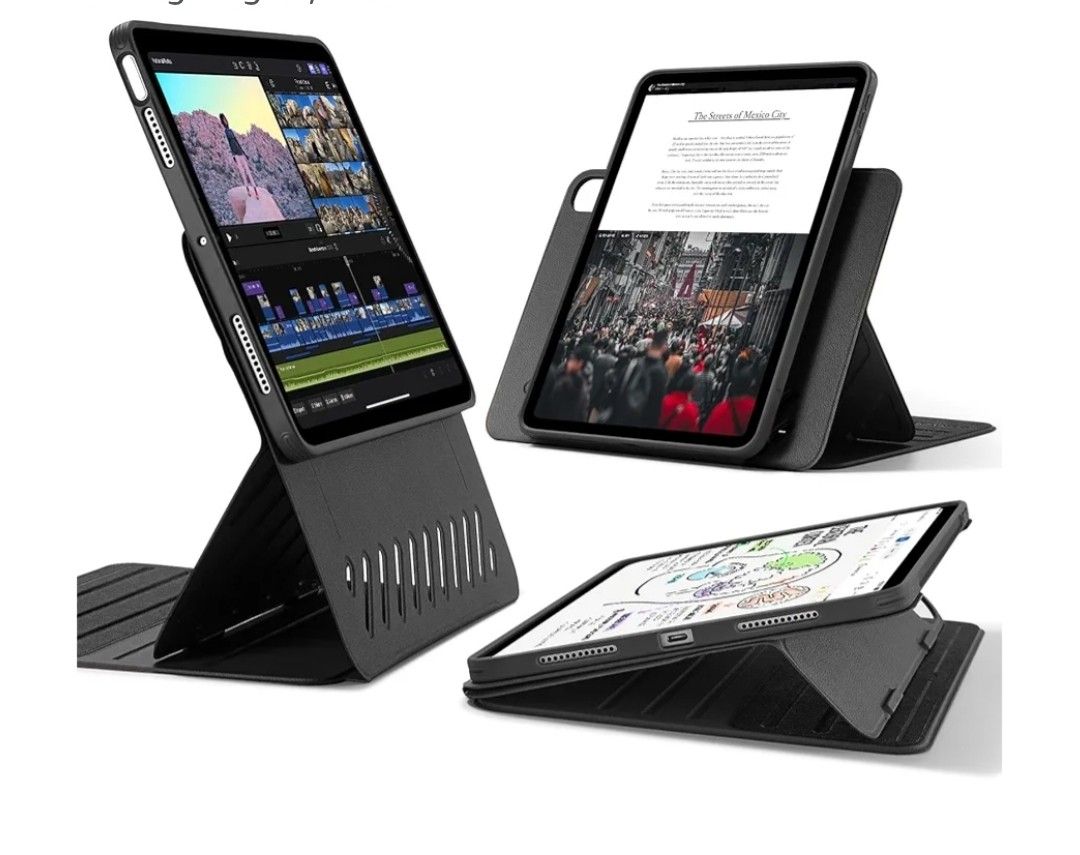 New iPad Air 11 Inch Case M3/M2 (2025/2024), iPad Air 5th/4th Gen Case (2022/2020) 10.9 Inch, Removable Magnetic Cover, Adjustable Portrait/Landscape Stand, 9 Standing Angles, Black Compatible Devices iPad Air 11 Inch (2025/2024), iPad Air 5th/4th Gen 10.9 inch (2022/2020) Models: A3266, A3267, A2902, A2903, A2588, A2589, A2591, A2316, A2324, A2325, A2072iPad Air 11 Inch (2025/2024), iPad Air 5th/4th Gen 10.9 inch (2022/2020) Models: A3266, A3267, A2902, A2903, A2588,… See more Color: Black Form Factor: Case Shell Type: Hybrid Material: Thermoplastic Polyurethane Compatibility: only for iPad Air 11 Inch M3/M2 (2025/2024) 7th/6th Gen and iPad Air 5th/4th Gen 10.9 Inch (2022/2020); Models: Air 11": A3266, A3267, A2902, A2903; Air 10.9": A2588, A2589, A2591, A2316, A2324, A2325, A2072; not compatible with any other iPad models Powerful Versatility: achieve up to 9 different angles, 6 for viewing and 3 for writing, via the dual support brackets and 6 magnetic grooves, then instantly detach for hands-on gaming or to magnetically attach to your fridge Ultra-stable Stand: wide support brackets magnetically lock into grooves in the base to give you superior stability, even when using your iPad Air on your lap Raised Screen View: enjoy a raised view of your iPad Air closer to your natural eye line and sit upright in a more comfortable position during long periods of use Double Protection: the dual back case and front cover design lets you snap on the lightweight back case for full-body protection against scratches and bumps, then magnetically attach the tough front cover for total 360° protection in every situation 6639