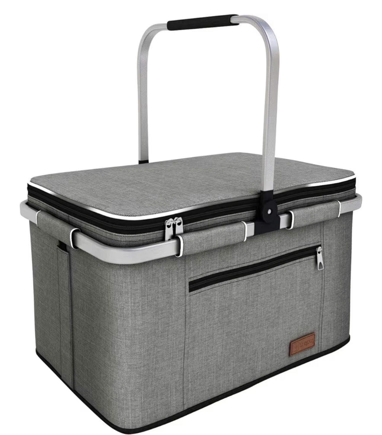 Picnic / kitchen basket. Lot of storage, inside is an insolating layer to keep things cool / warm Pick up in downtown Chicago (River North) near Merchandise mart / blue bottle coffee.
