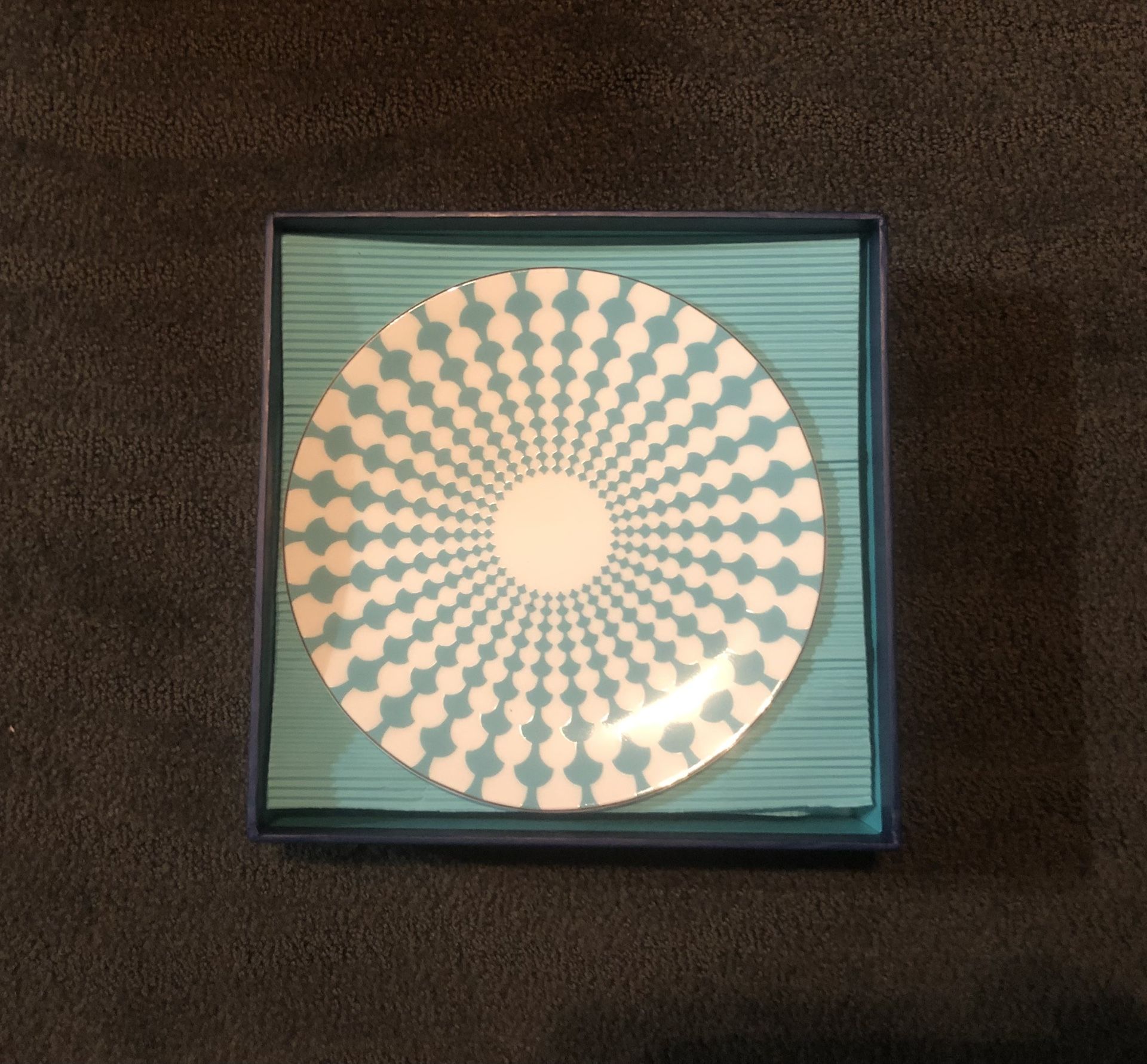New in box B by Brandie Salad\Desert plates sets. Each set of 4 plates is $6 Porcelain 8.25” Turquoise - 1 Set avail $6 set of 4 plates Blue - 2 Sets avail, $6 per set $15 for all, 12 plates
