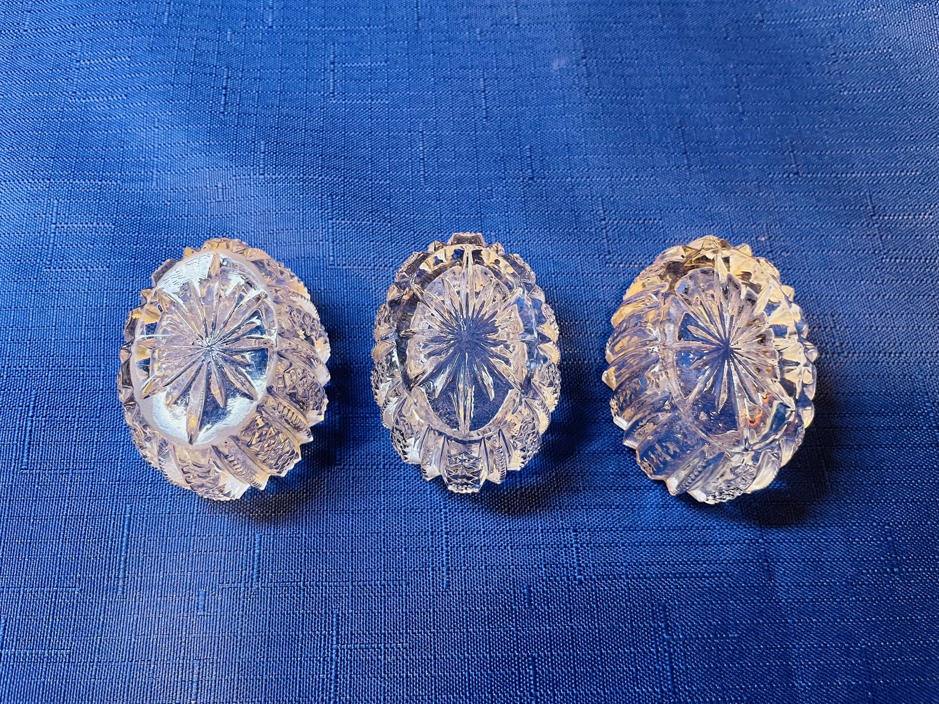 Beautiful Vintage Set Of 3 Pressed Glass Salt Cellars With A Sunburst Pattern
