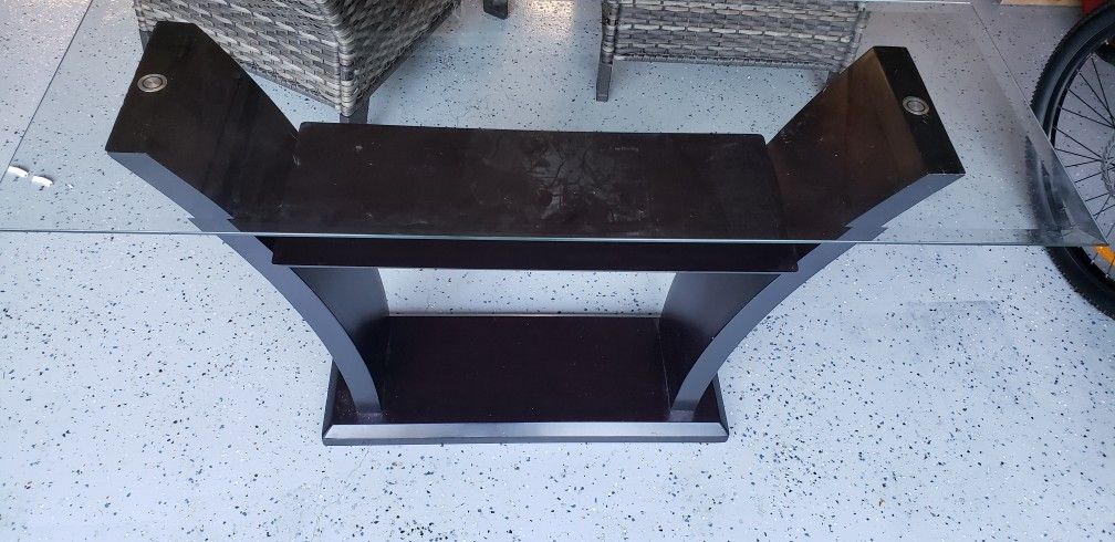 TV stand with glass top. Deminsions 50" x 48" x 19" Great condition, very sturdy.
