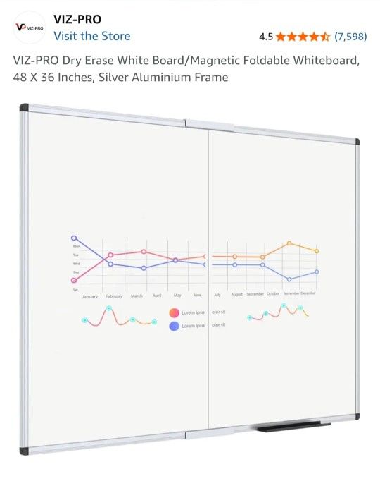 New - Dry Erase White Board/Magnetic Foldable Whiteboard, 48 X 36 Inches, Silver Aluminium Frame