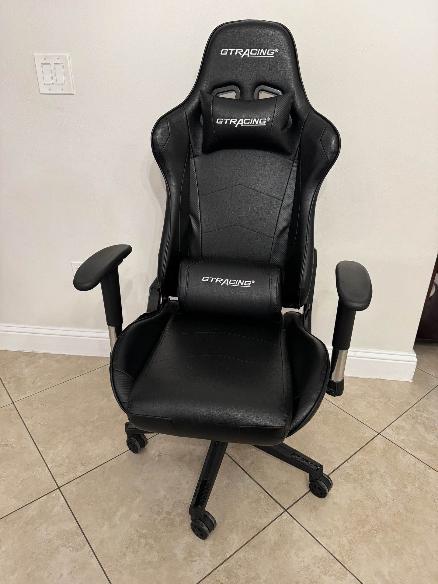Ergonomic computer game chair. Back & head rest, adjustable height. Gently used, retails for $129
