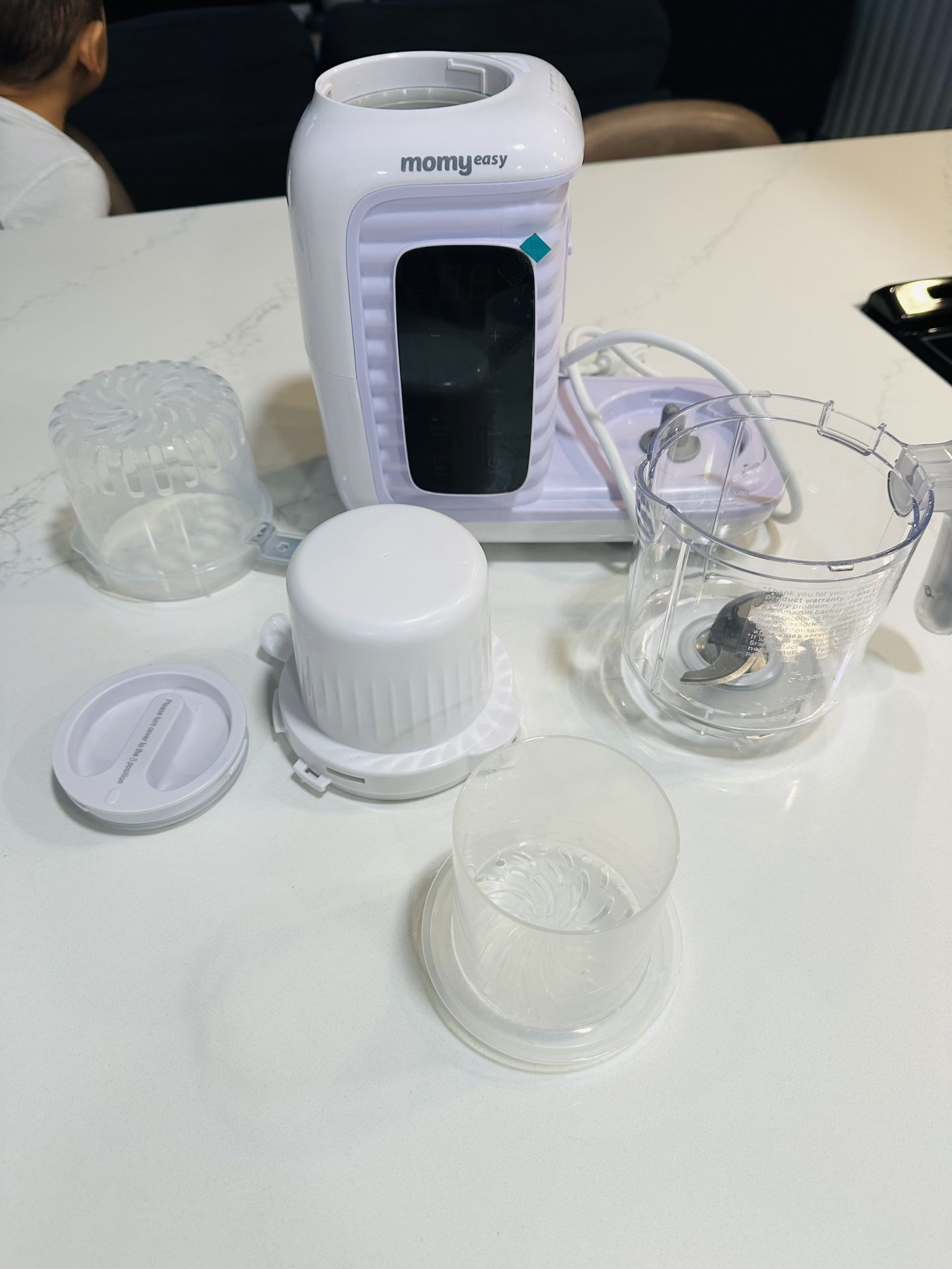 MOMYEASY Baby Food Maker, Multifunction Processor Chopper Grinder, Baby Food Steamer and Puree Blender in-One, with Bottle Warmer, Auto Cooking & Grinding with Touch Control Panel Like new! Only used once! I ended up working full-time while being the primary parent at home so I had zero time to experiment and have fun with it! All parts included! Like new!