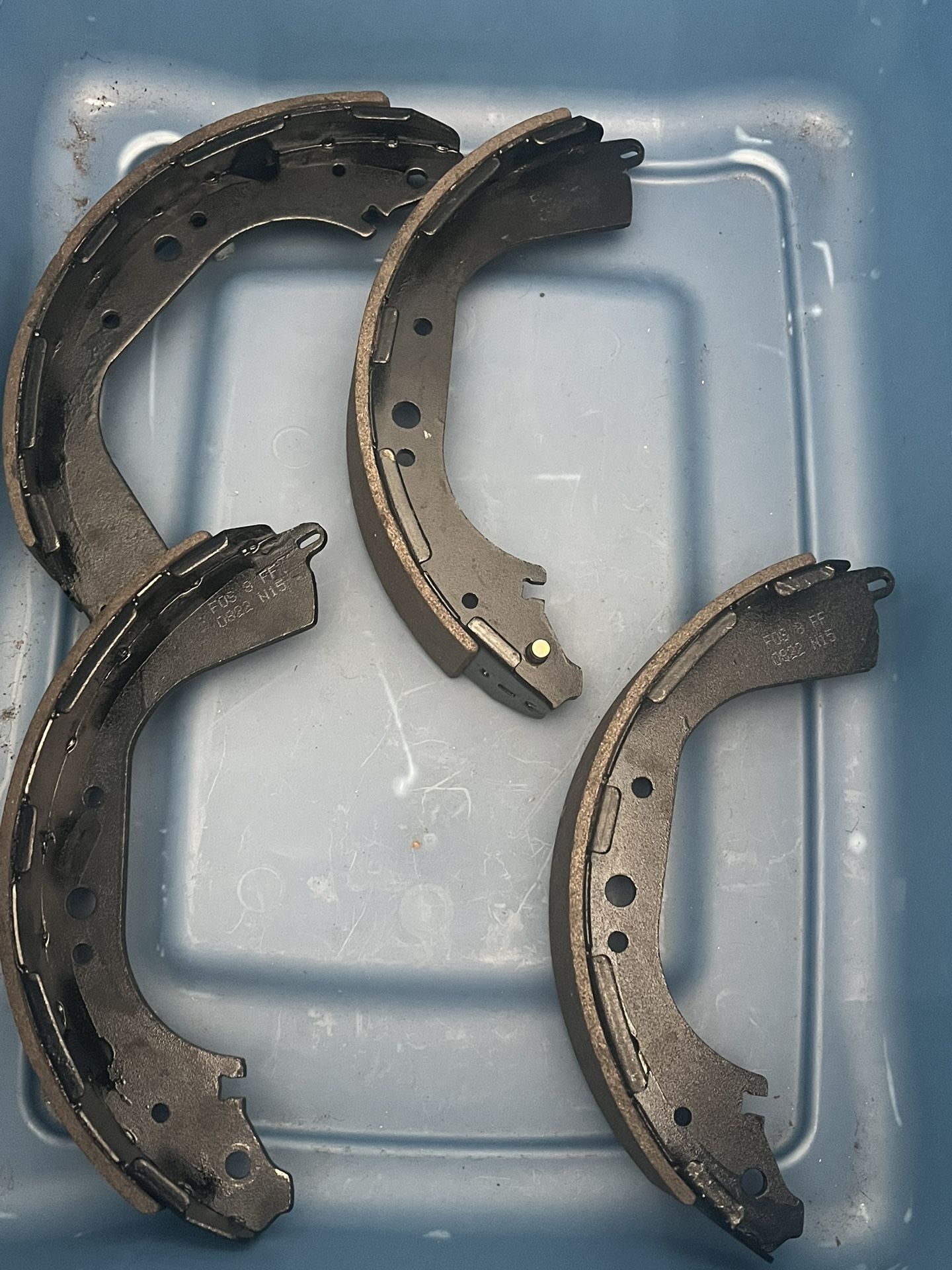 Brand new unused Nissan frontier 4x4 rear brake pads these will not fit the 4X2 rear brake rotors . Great quality Detroit brand use correct anti rust paint also oem manufacture shoe thickness to get best stopping pressure without dust .
