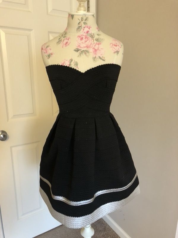 Stretchy heavy material. Silver accent. Size XS fits like a 2/4