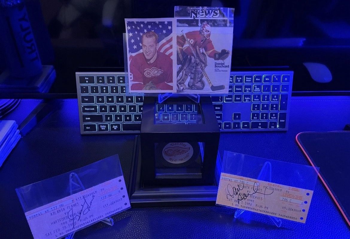 I am clearing out some of my collection and want to lot these together. I have a Detroit Red Wings signed puck by Gordie Howe in casing, Also I have two Tickets from Atlanta flames vs Colorado Rockies from 1980 Signed by Gordie Howe & Daniel Bouchard. No COA but it was graded at some point, has the sticker with #s Everything is in excellent condition. Thank you for looking.