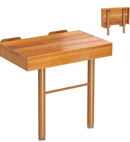 (New in Box) 20 Inchs Teak Folding Shower Seat Wall Mounted, Fold Down Shower Seat for Inside Shower, Home Care Folding Teak Shower Seat, Folding Sho