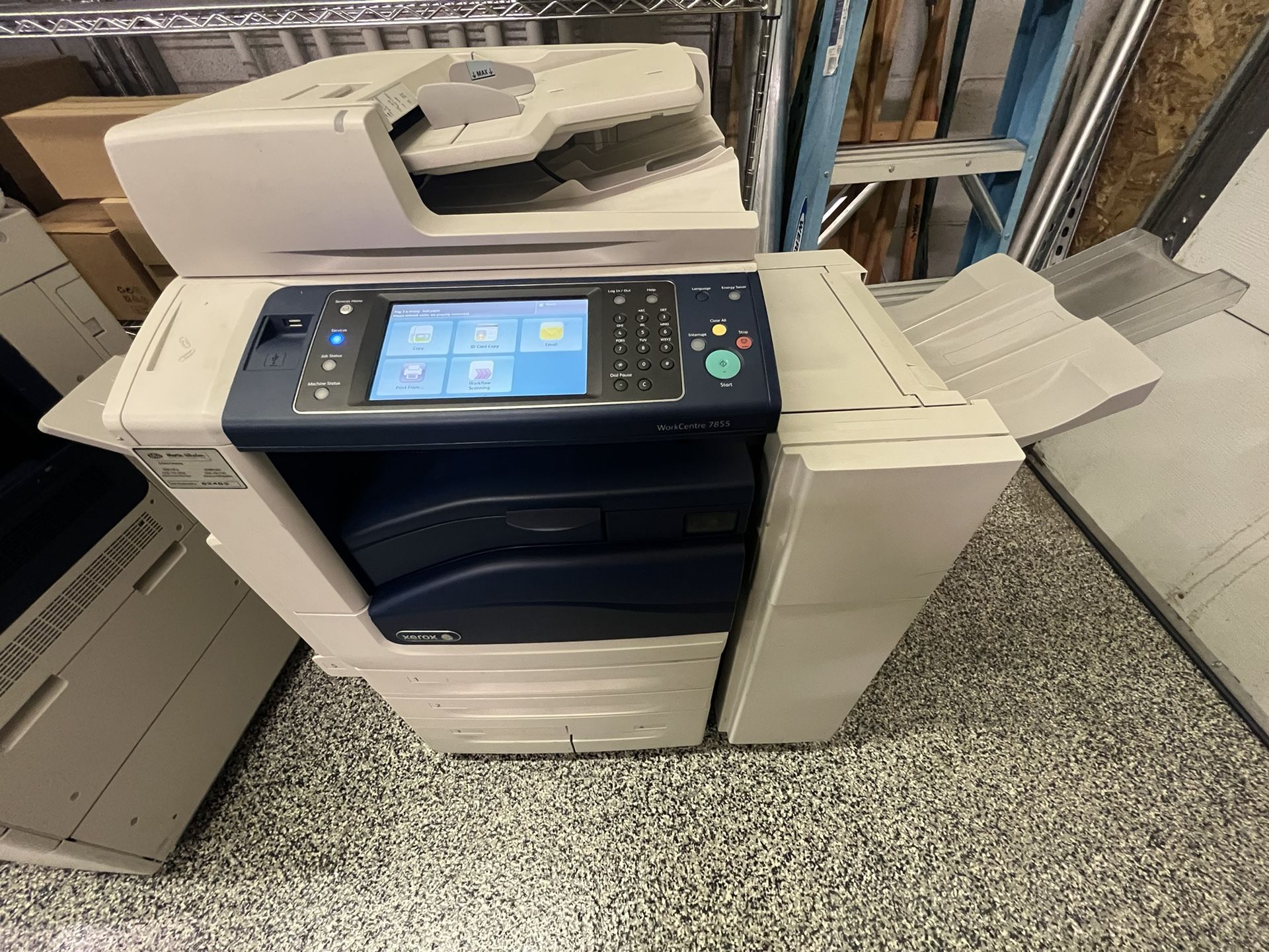 Upgrade your office with this reliable Xerox WorkCentre 7855 with Finisher! This high-performance multifunction printer is designed to handle a variety of tasks with ease, making it an ideal choice for busy work environments. Key Details: Model: Xerox WorkCentre 7855 Total Impressions: 463,224 Black Impressions: 207,032 Color Impressions: 256,192 Toner Levels: Black: 100% Cyan: 30% Magenta: 20% Yellow: 90% Features: Black & Color Printing – Delivers crisp and clear prints in both black and color. Multifunction Capabilities – Print, Copy, Scan, and Fax functionalities all in one unit. User-Friendly Interface – Easy-to-navigate touchscreen control panel. Robust Performance – Handles high-volume tasks with efficiency. Workstation Capable – Ideal for use in a busy office environment with heavy usage needs. Condition: Pre-Owned – In good working condition, fully functional. Cosmetic Condition – Minor signs of use, consistent with office equipment of this age. Pickup Details: Location: Oak Lawn, Illinois Note: Pickup only Don’t miss out on this great opportunity to get a top-tier multifunction printer at a fraction of the cost of a new one. Perfect for businesses or home offices needing a reliable, high-volume printing, scanning, and faxing solution.