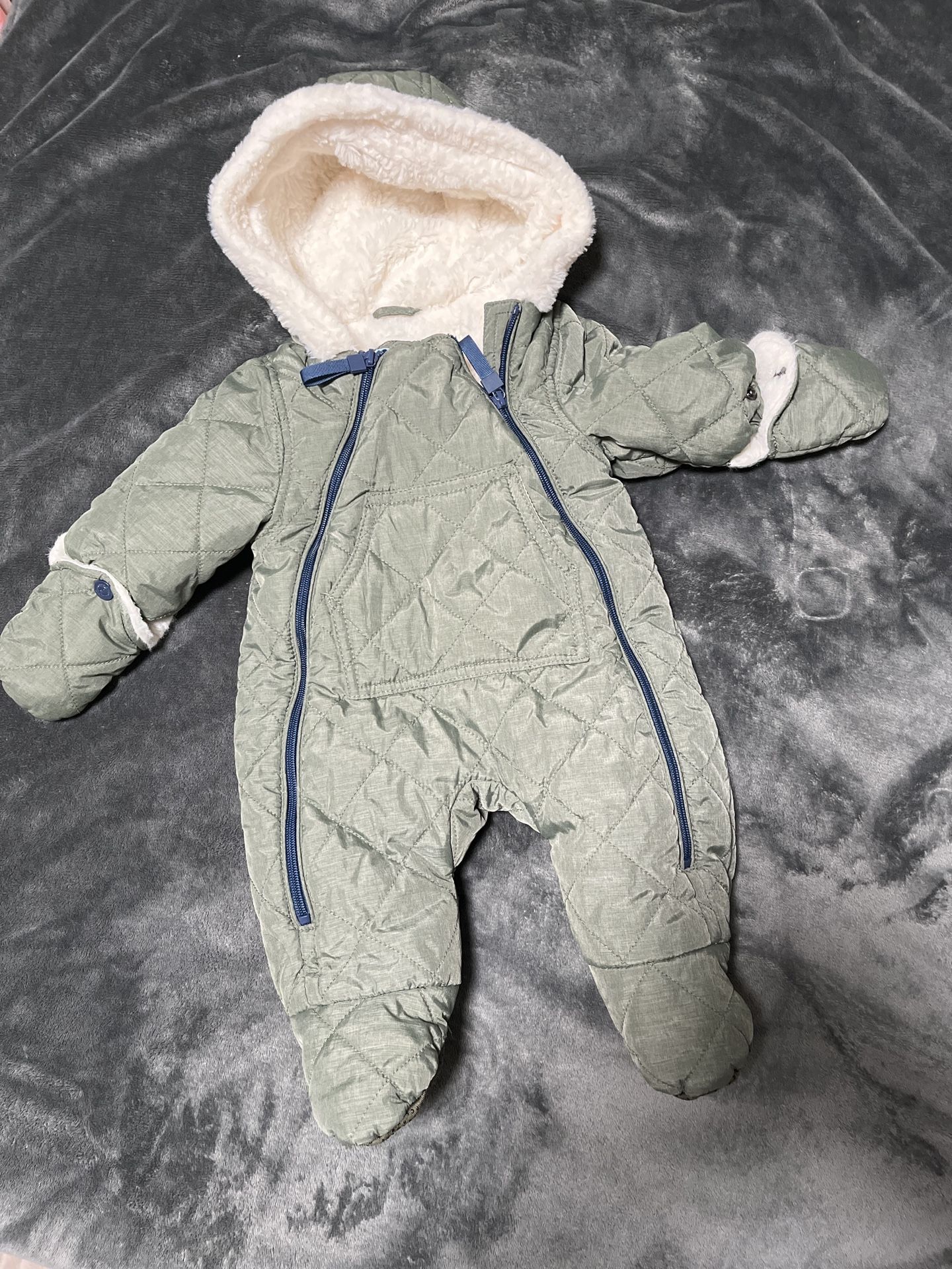 Here's a gently used Urban Republic Outerwear baby snowsuit. It's a size 3M and features a cozy, quilted design. Perfect for keeping your little one warm and snug during the colder months!