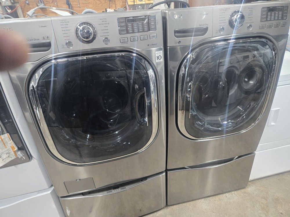 Lg Washer And Dryer Set Electric Sidekick washer Pedestals Lavadora y Secadora Stackable or separate side by side H38 w27 d27 Delivery Available for afee Free haul away available for your old appliances 30-day Warranty More appliances are available at my page Topload washer available Frontload too Regular Dryer available Fridge Bottom Freezer refrigerator Range Estufa stainless steel Glasstop coil dorm Fridge mini Clean smart appliances for less Elite service same day delivery Appliances recycling ♻️ services Beko ge Kenmore maytag fridgedaire lg Electrolux Samsung ventless 110v Buy sell trade king pierce Thurston kitsap Snohomish county Realtor remodeling property manager home appliances