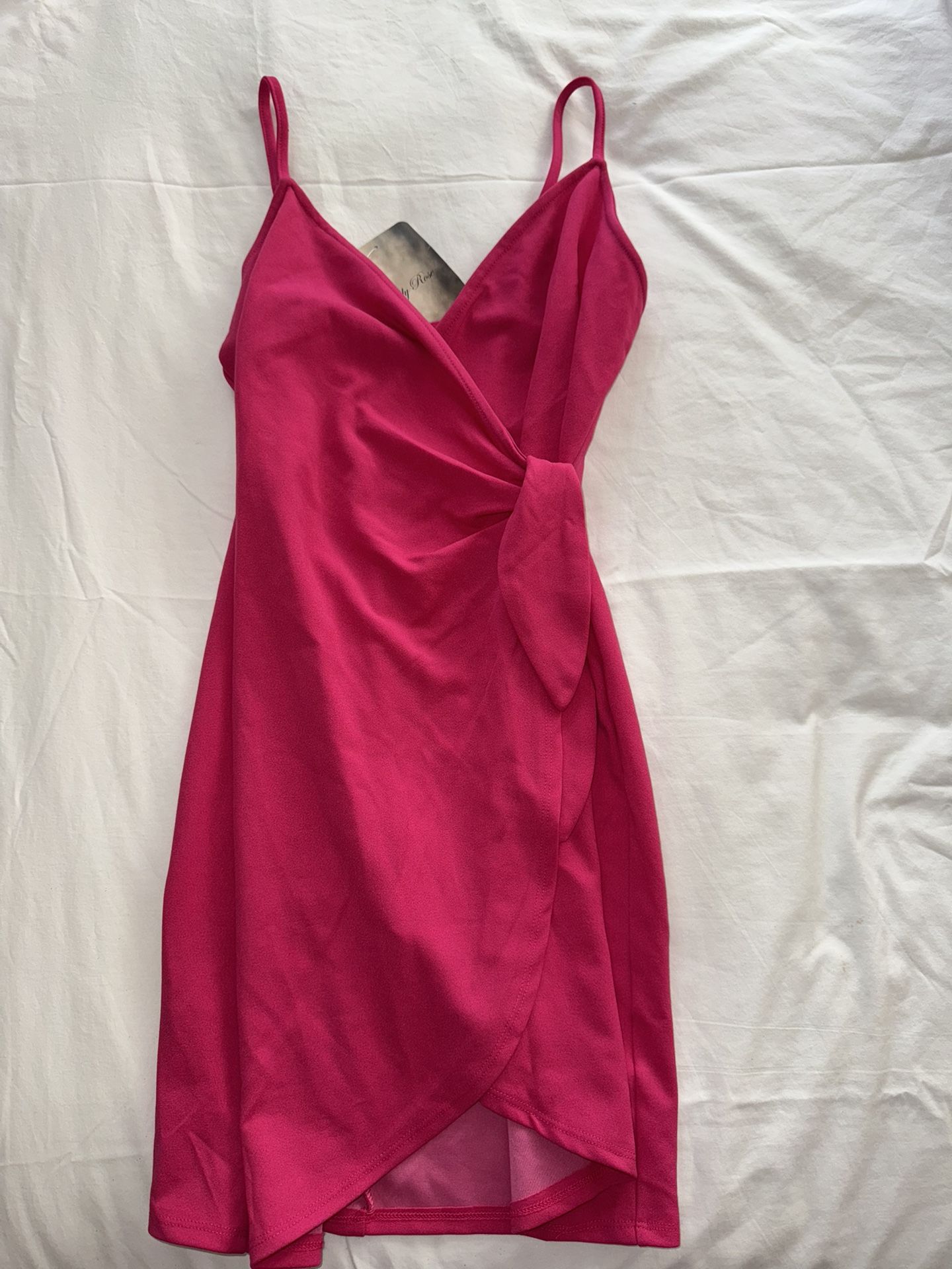 Elegant hot pink sleeveless dress with a wrap design. Brand new with tags! Super cute! $20