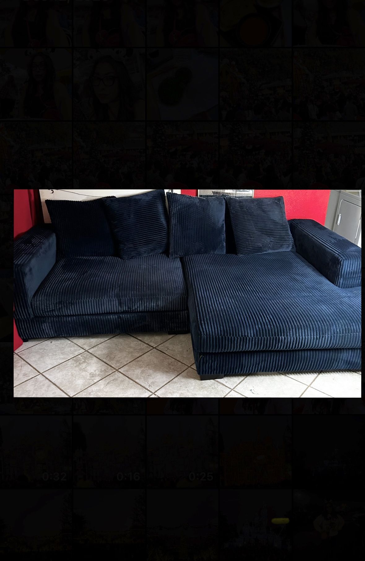 Comfortable blue corduroy sofa in great condition. Make me an offer, everything must go! Got questions? Just ask! I post new stuff all the time, so check out my other listings. Located in North Hollywood. Hablo español. I take cash, Venmo, and Zelle. No holds—first come, first served. Delivery available. Open to offers!