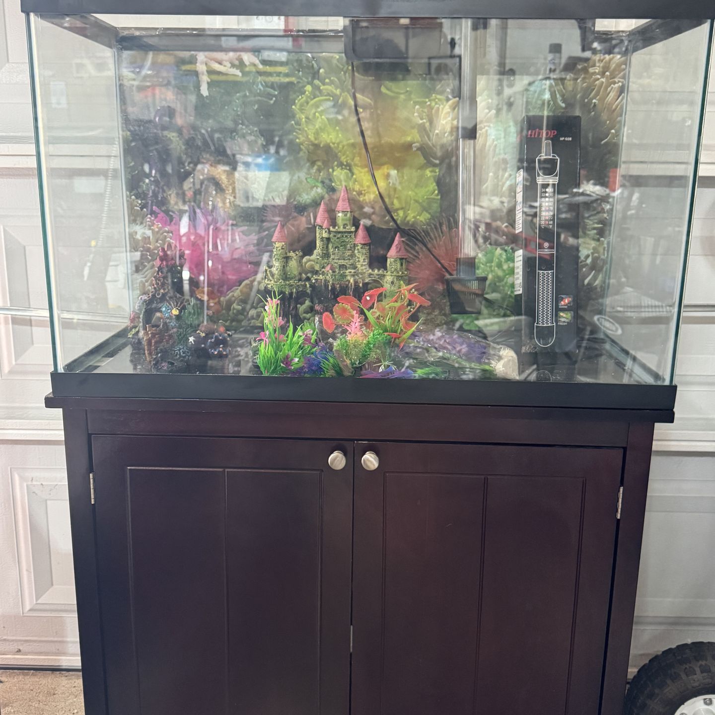 Aquarium is in excellent condition. Great filter, new heater, new ornaments. In