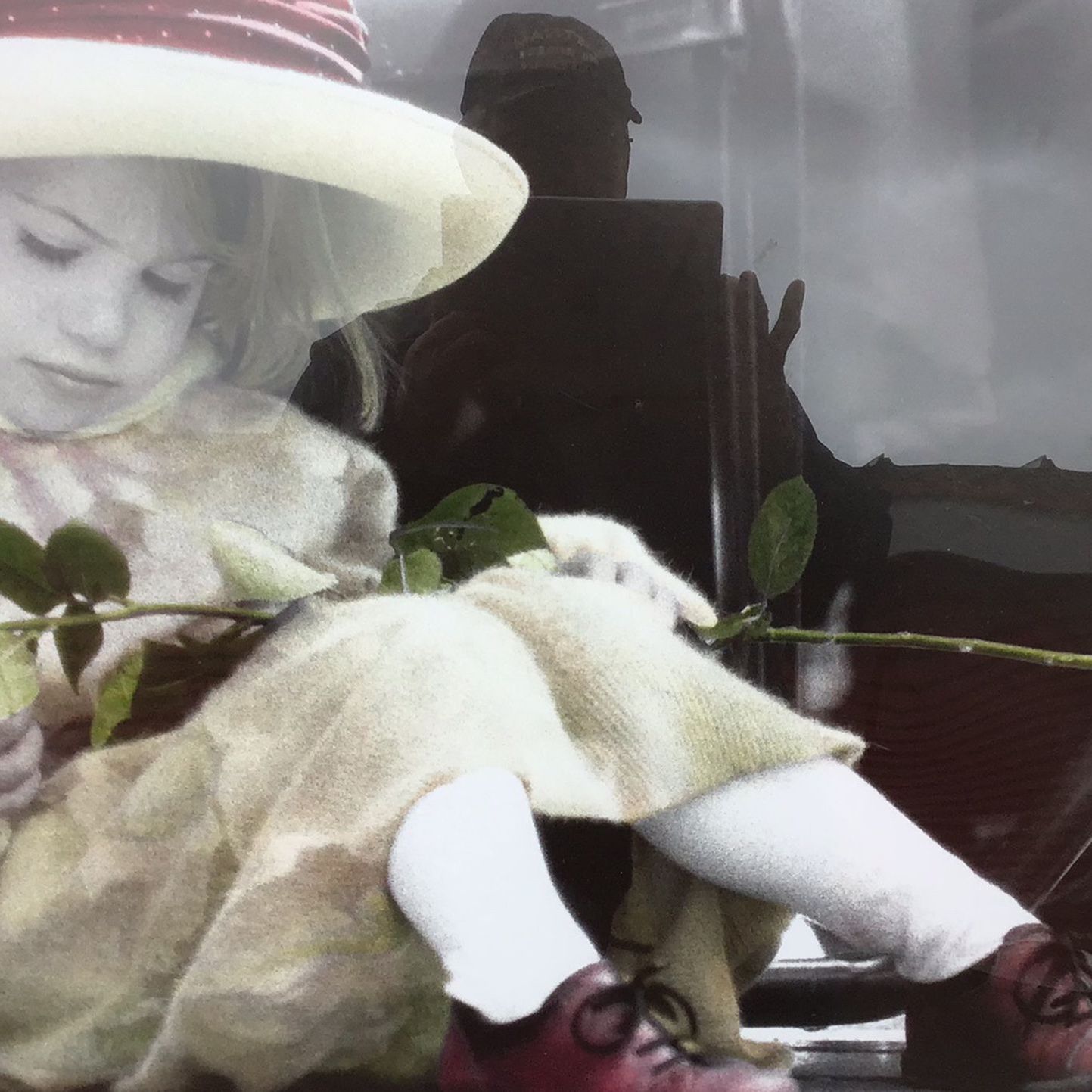 Picture of young lady. Measures 41 inches by 26 inches. With wooden frame.