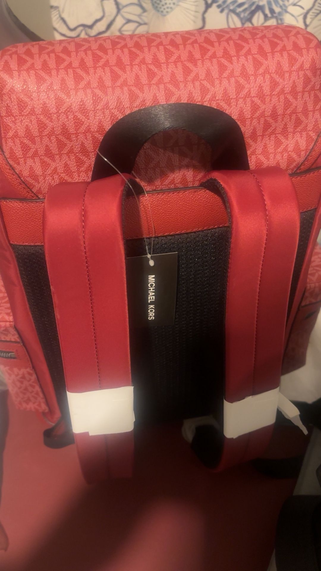 Michael Kors Red Logo Backpack Adjustable Strap Inner Pockets Unisex Designer