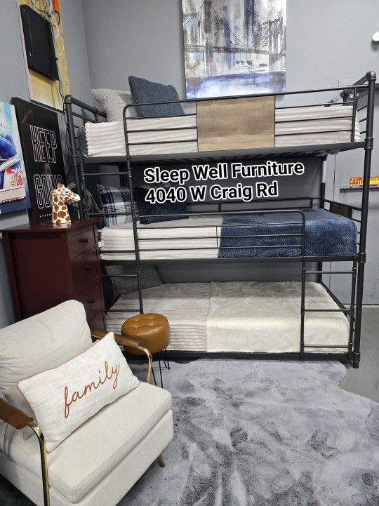 ✨️ Twin Triple Bunk Bed With Mattresses, Furniture Queen Beds, Dining Avail