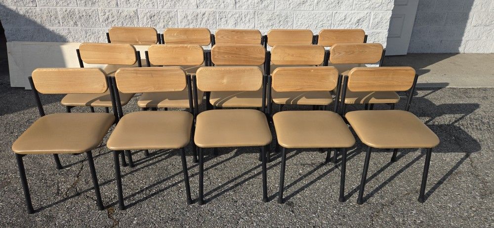 34 Used Restaurant Chairs, Solid Wood Back, Cushion Seat