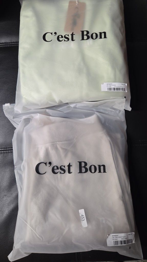 Size Medium Pistachio and grey core hoodie and pants authentic very comfortable designer material retail for 150 hoodie alone brand new in bag with tags Authentic Im charging 100 for the combo