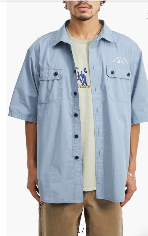 Brand new with tags, Embroidered Short Sleeve Utility Button-Up Shirt. Original price was $69.00 Keywords mens clothing clothes items general accessories home household gucci Salvatore ferragamo belts shoes sneakers urban outfitter designer t shirt short womens