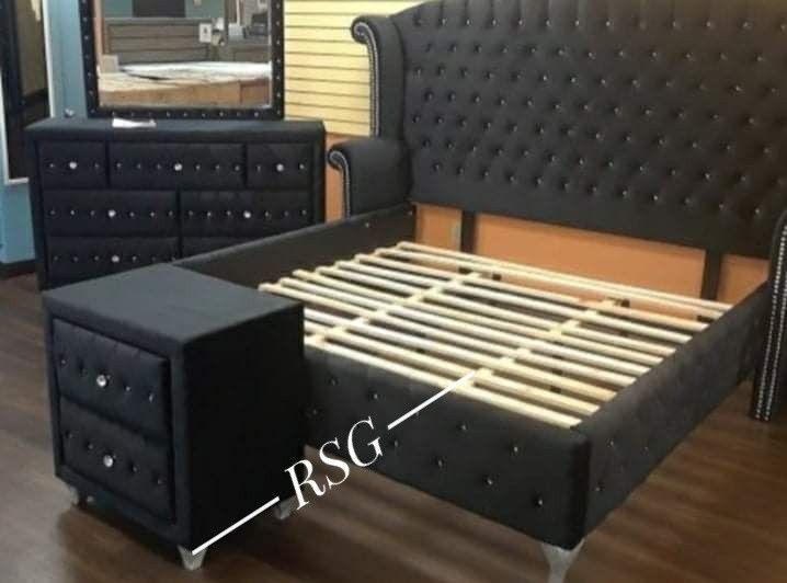 King, Queen Bedroom Set; Bed Frame, Dresser, Nightstand, Mirror ❤️No Needed Credit Check 💛 $39 Down Payment with Financing0833
