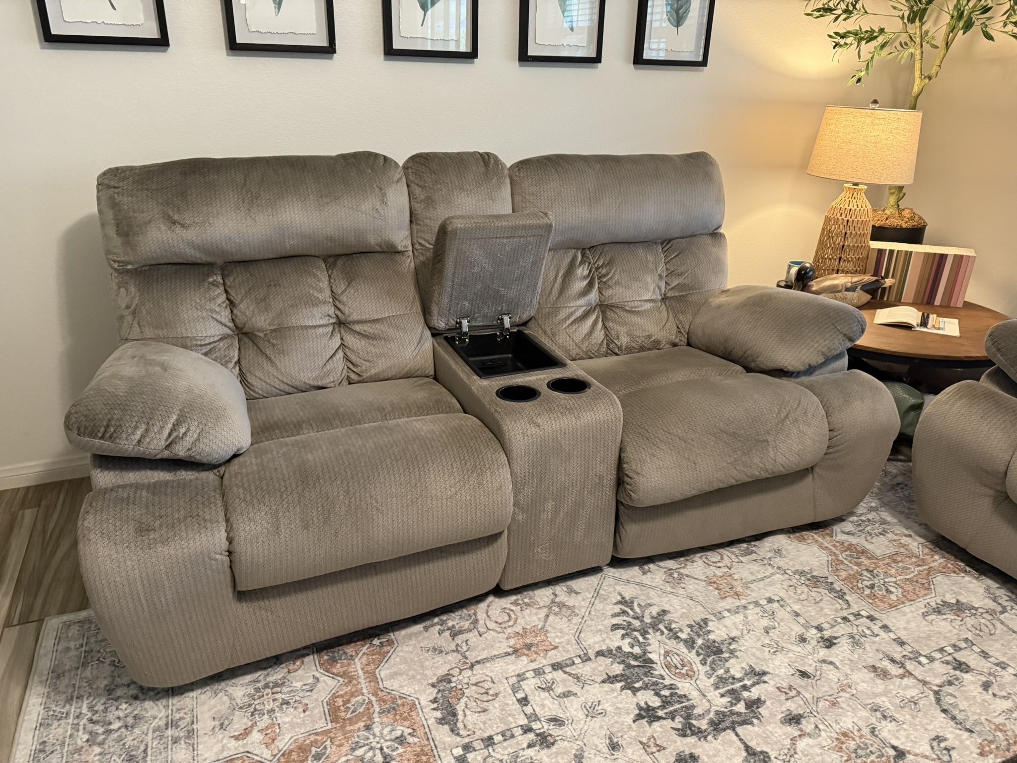 2 Pieces - Electric High Back Grey/Brown Power Reclining Couch Sofa And Power Reclining Loveseat - credit card accepted