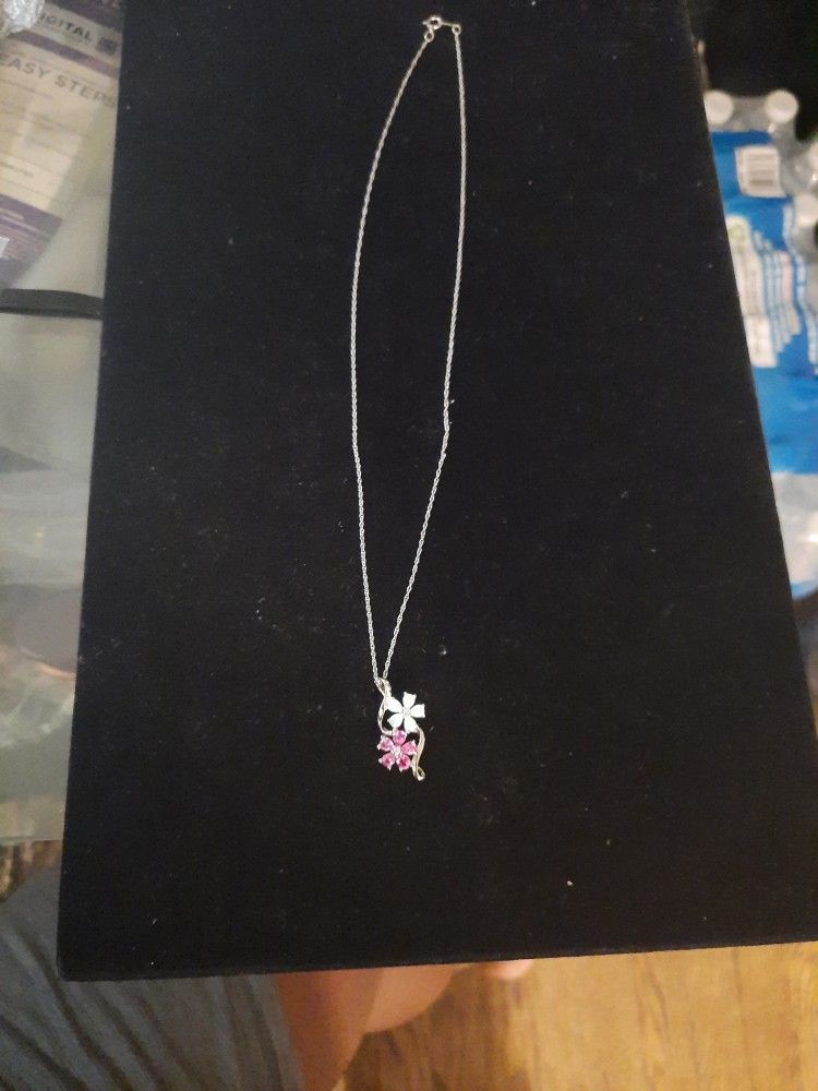 Nice sterling silver necklace with sterling silver charm with Opal,Pink Topaz and Diamonds..hallmark..tested..OBO..I accept cash app, square and cash..I ship for free with tracking number....You can reverse this charm to have the Pink Topaz stone at the top....