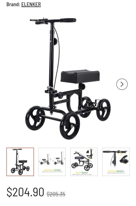 ELENKER Steerable Knee Walker Deluxe Portable Medical Scooter Foot Injury Black BRAND NEW IN THE BOX!! *ASSEMBLY IS AN ADDITIONAL $10 (7261-2) Scooter--Elenker Deluxe Walker