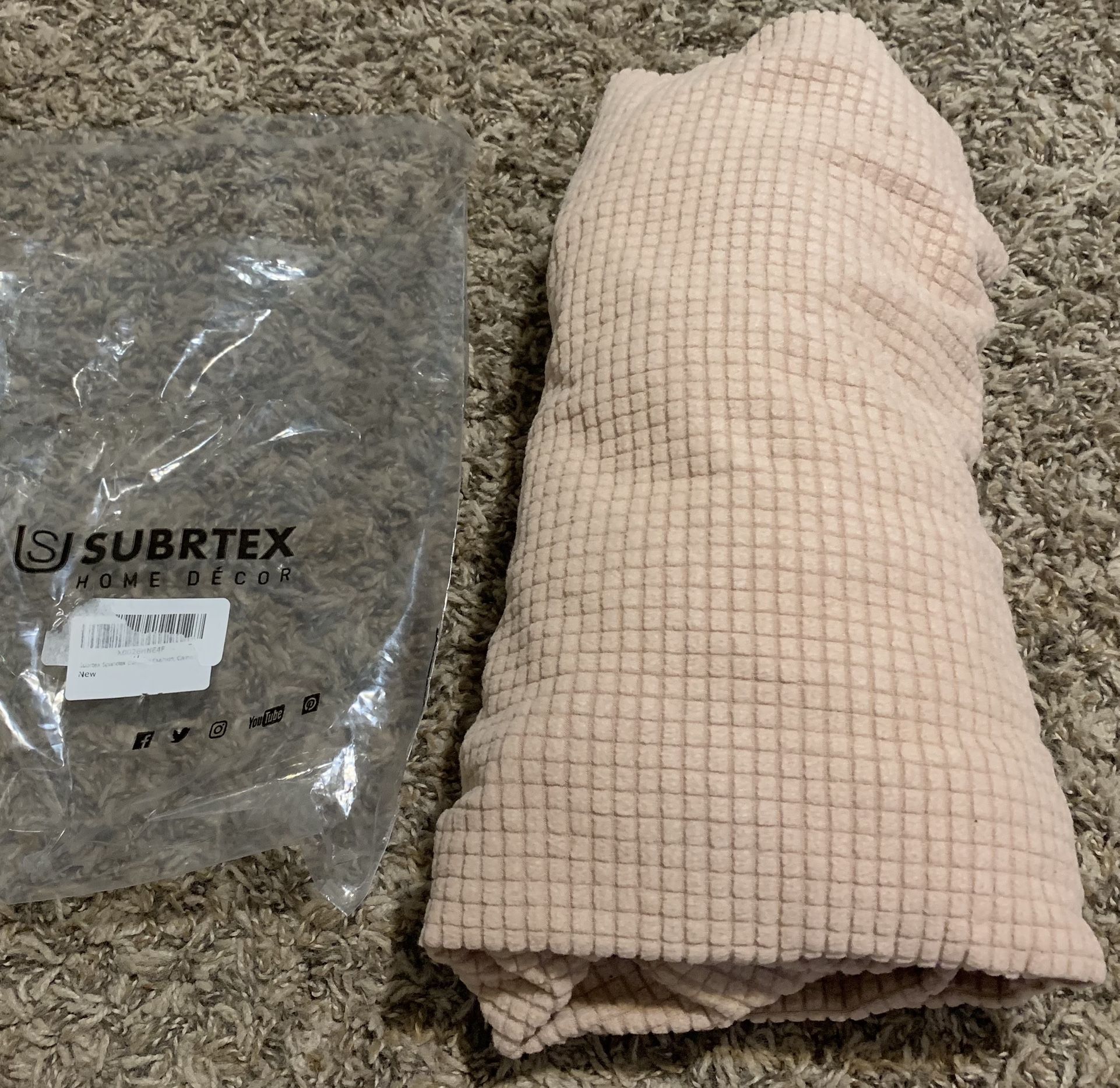 Subrtex Stretch Armchair Slipcover 1-Piece Textured Grid Camel Color
