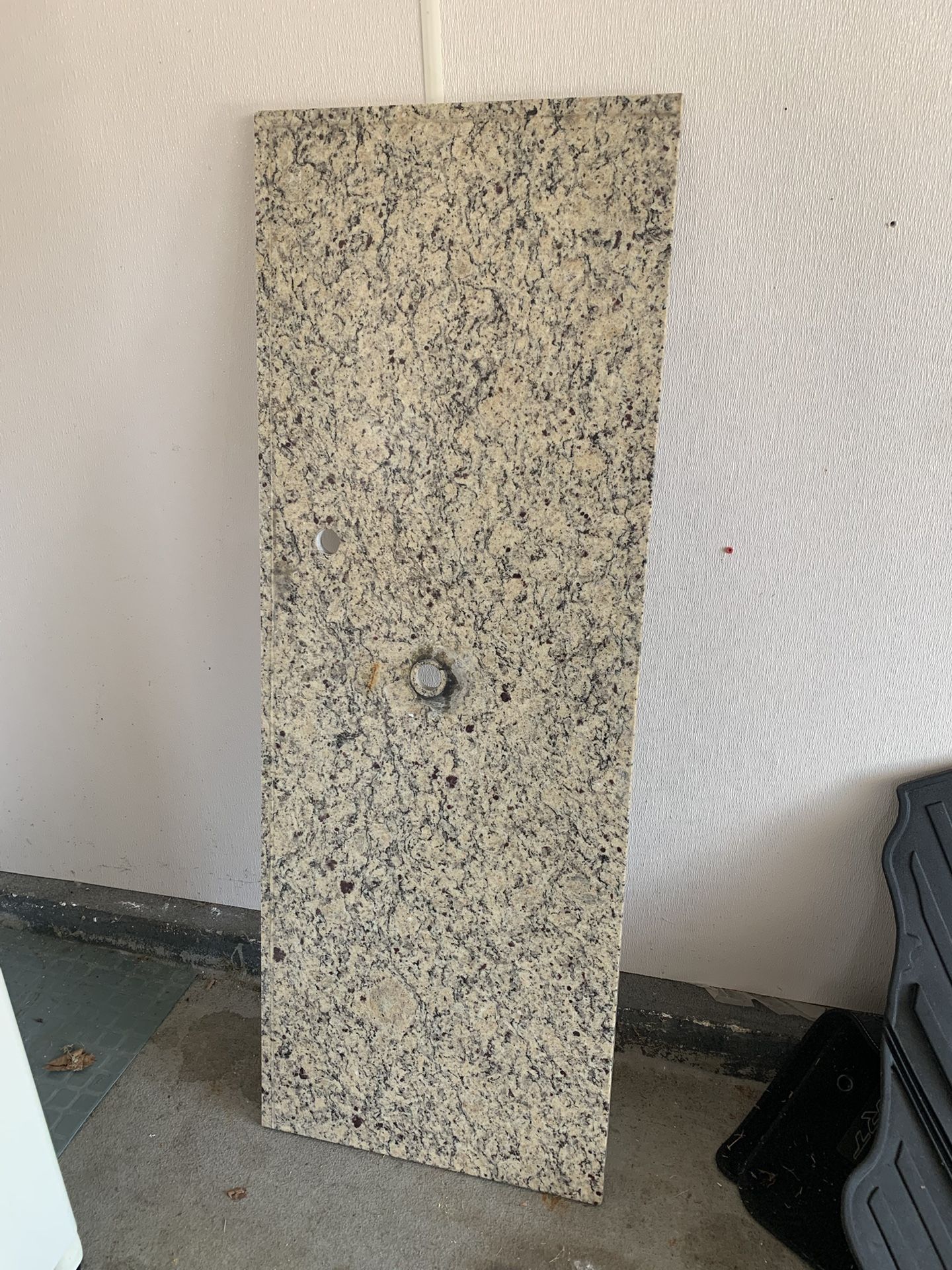 The dimensions are 62 inches by 22 inches. This was a bathroom vanity counter top.