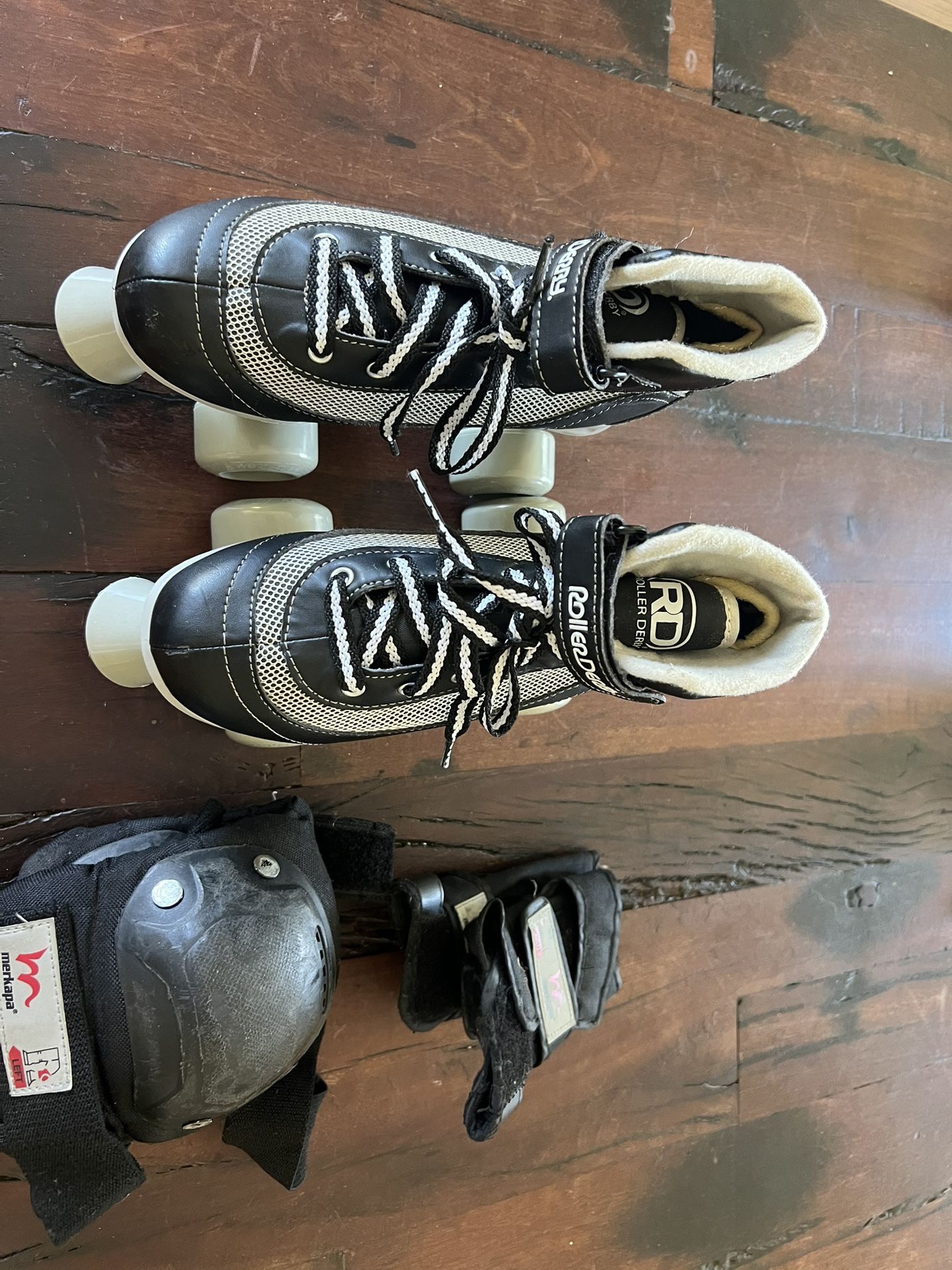 Great set for beginners or casual skating! • RD (Roller Derby) youth roller skates, size 4 • Used only indoors – wheels and bearings are in excellent shape • Includes wrist pads and knee pads for added safety Perfect for kids looking to skate at the rink or learn at home. Price: $15 for the whole set. Pickup: Los Angeles