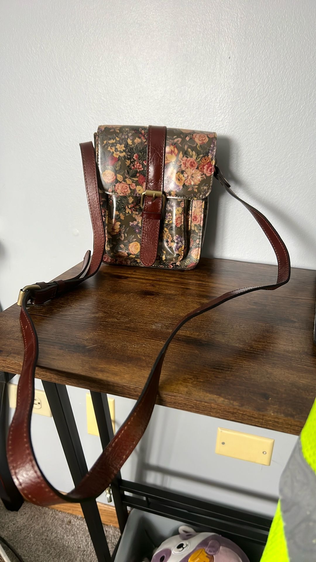 English country garden bag Product is made from 100% leather Measurements:Approx. 6.625"L x 3.25"W x 8.5"H with 21" to 24" strap drop. Shell:100% leather Out of box, not used.