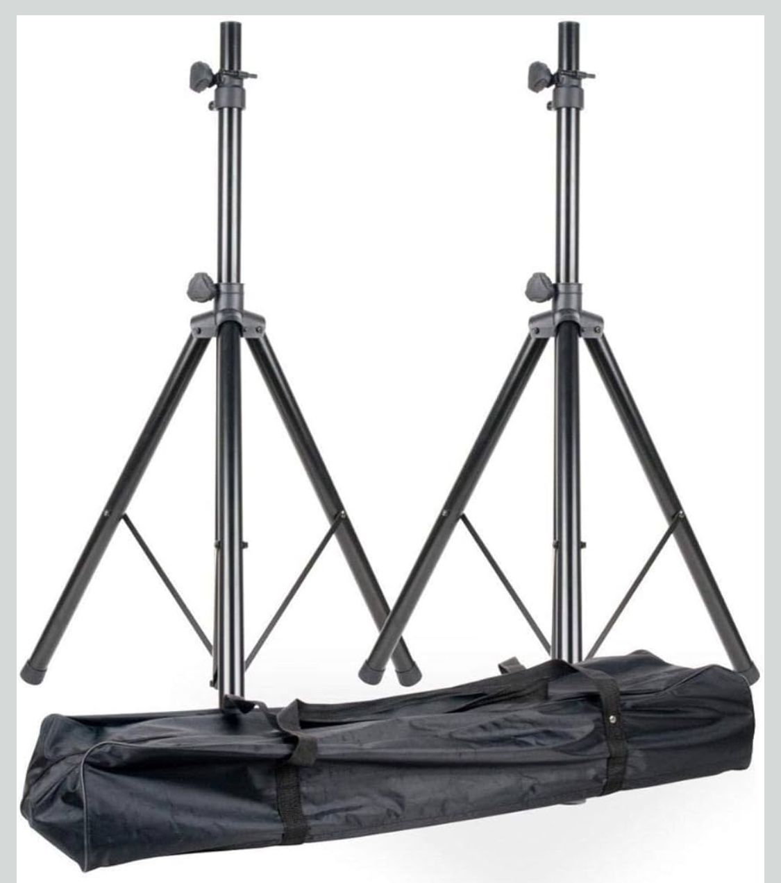 2speaker stand w bag Specifications: • Heavy Duty Speaker Stands • Weight capacity: 100 lbs. / 45.4 kgs. • Recommended maximum height: 6 ft. • Pipe Diameter: 1.625” in. / 41.3 mm • Weight: 6 lbs. / 3.75 kgs CREDITO DISPONIBLE with Snap financedj equipment bass Similar to jbl ADJ DMX cable audio J-maz Yamaha Digital DJ led moving head Denon pioneer shure qsc crown technics chauvet ev truss global speaker bocina XLR amplifier mackie powered Karaoke system light stage bar stand club fog rack facade laser line array spark fog machine Odyssey case RCF DAS THOR AD Acoustic Drive speakers
