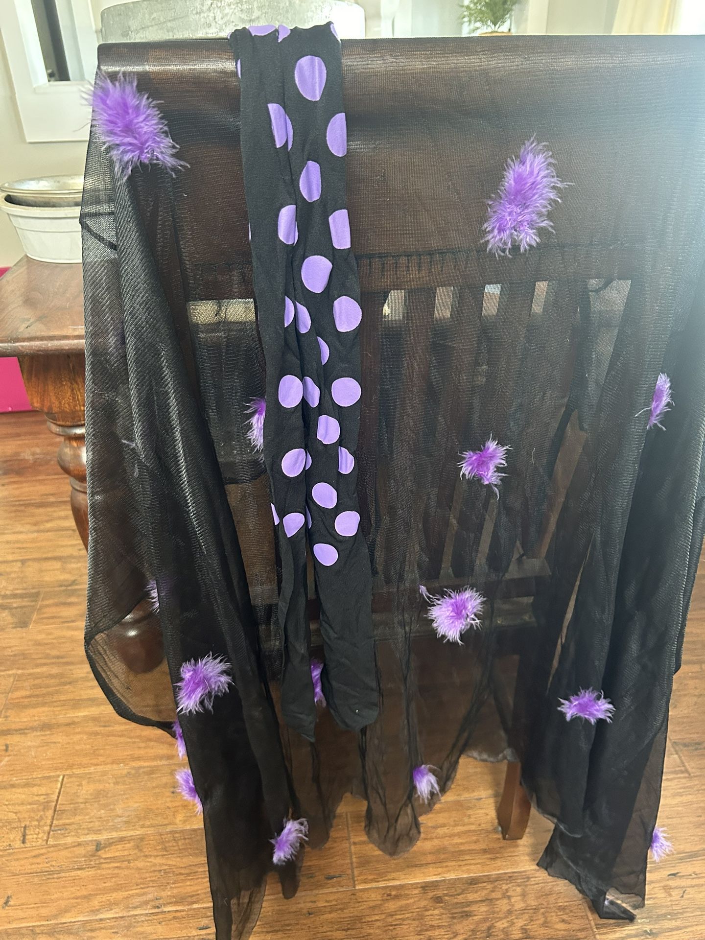 Witch black dress with polka dot cape and tights Dress is womens small or girls large