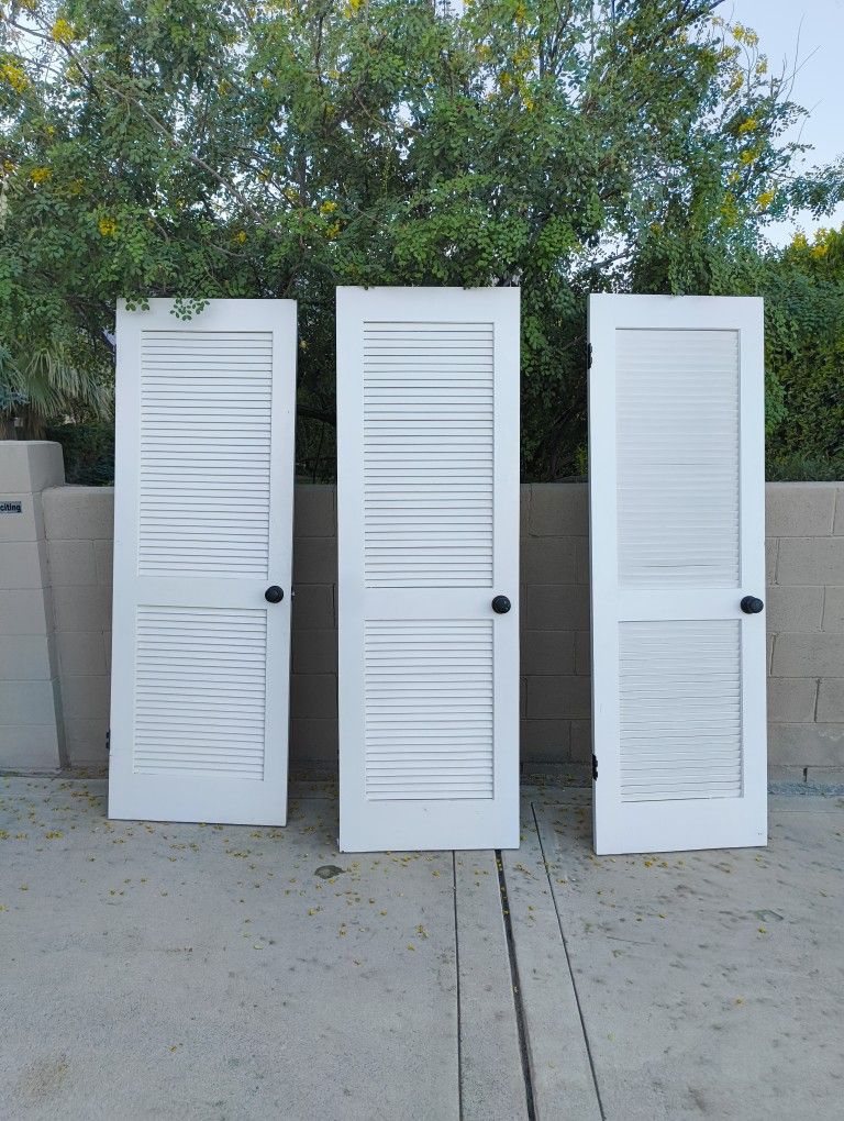 Good condition. Must take all three. Dimensions: Door A: 27¾" x 79½" Door B: 25¾" x 79½" Door C: 25¾" x 79½" Must pickup by Thursday 10am
