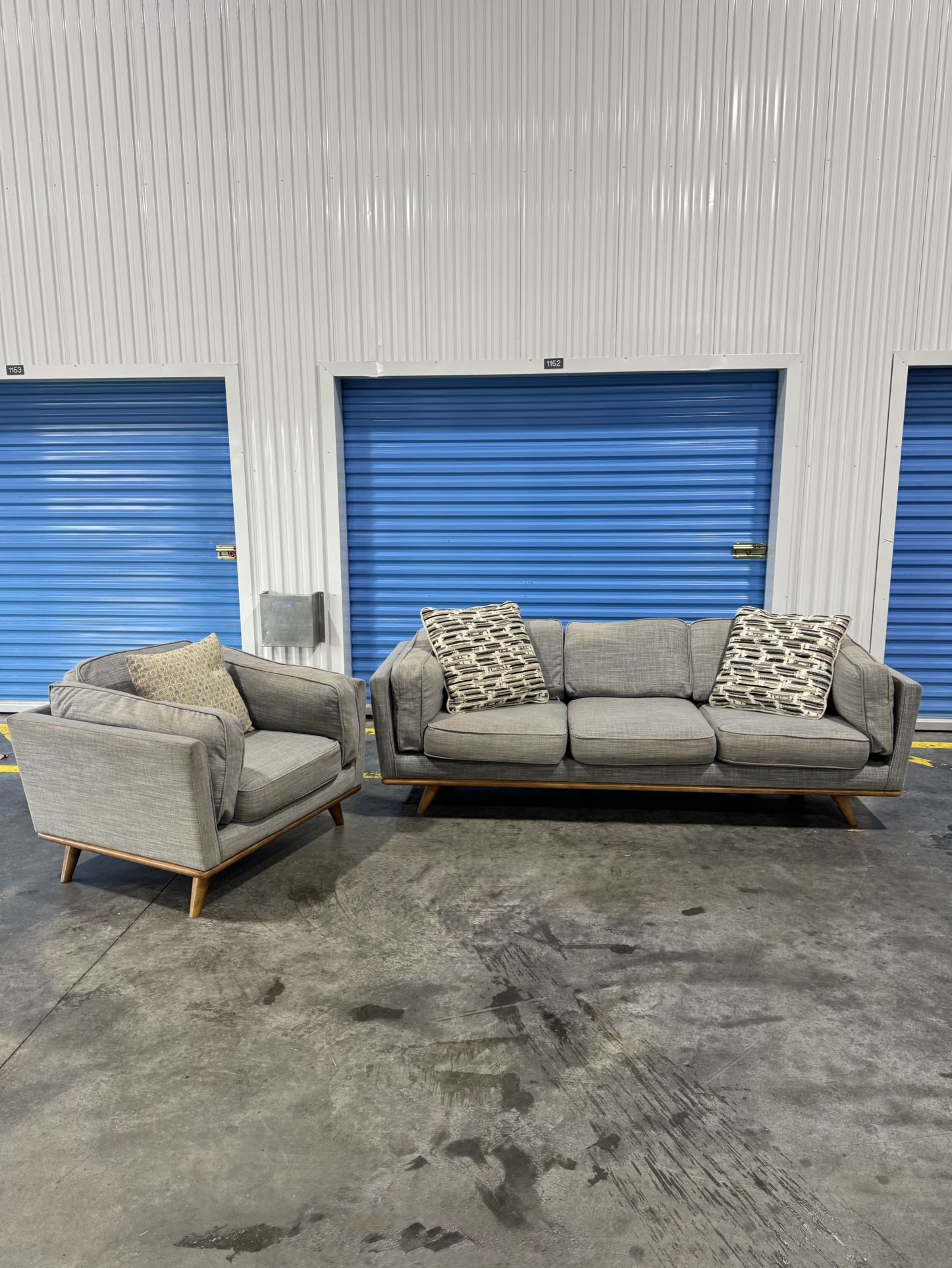 I'm selling my Article brand couch set it's in overall good condition has a little bit of wear from being in the sunlight No rips or tears all cushions are removable and washable and have been all cleaned Comes from pet friendly home but is smoke free Measurements : 90 inches long on the couch and the chair is 40" x 40" both pieces has a height of 25" to fit through your door I'm willing to deliver if needed and help load into your home