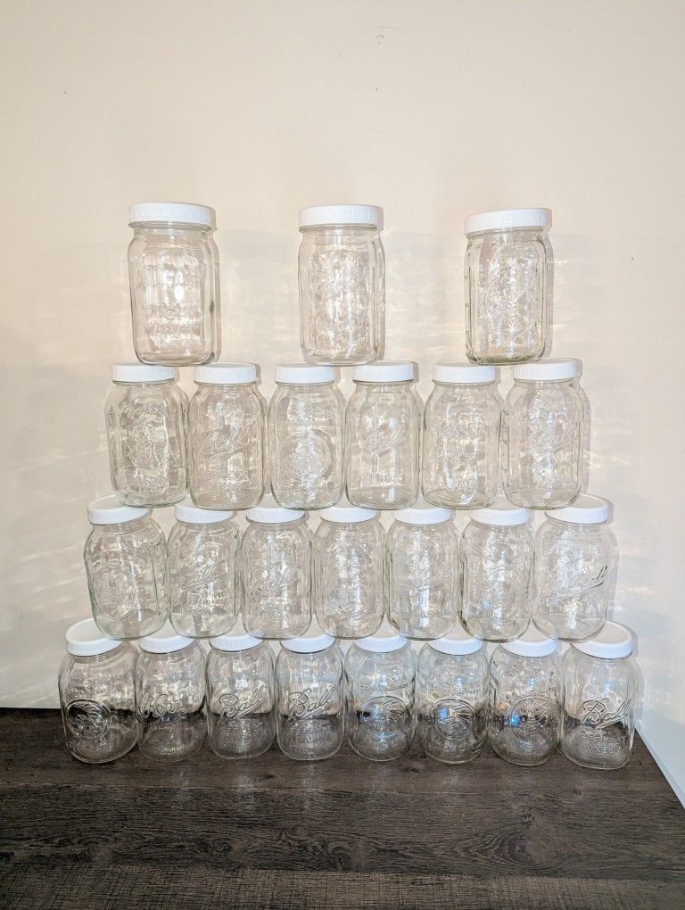 (24) 32oz Mason Jars with White Plastic Screw-On Lids